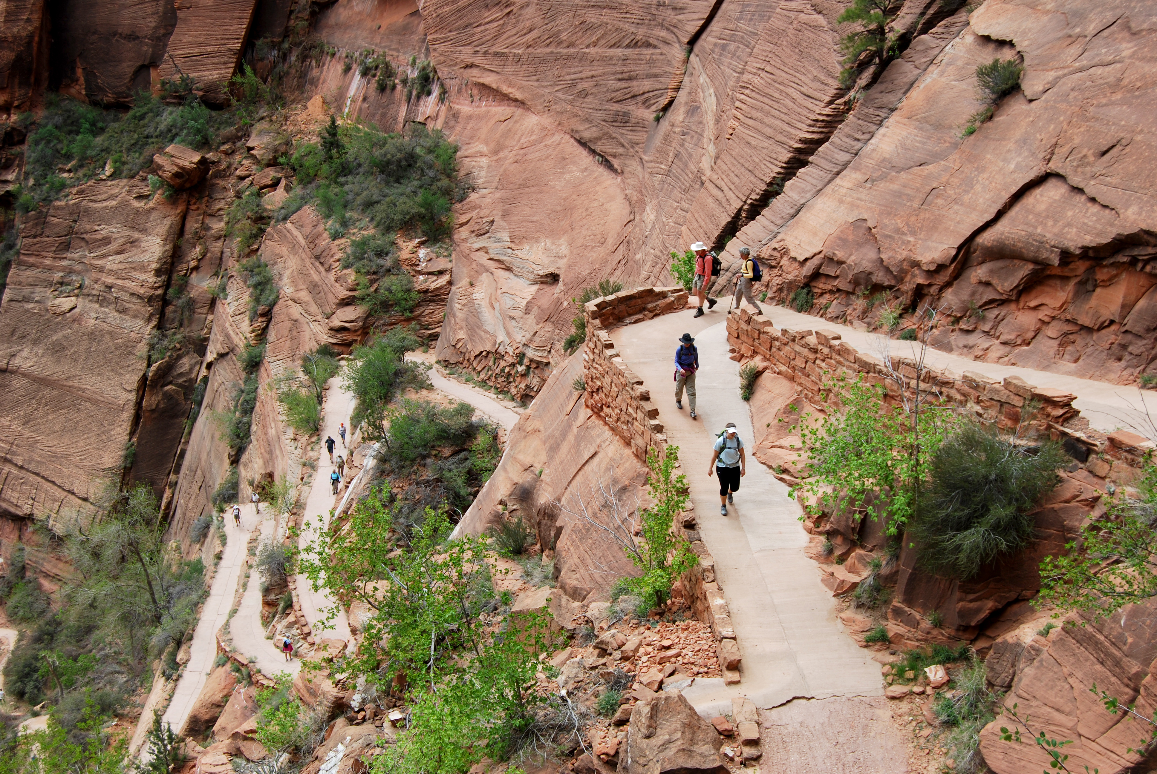 This part of the hike isn’t bad at all. It is relatively flat compared to the rest and is nicely shaded in a beautiful canyon with fun shaped rocks on the wall you walk along. This canyon takes you to the hardest part of the hike, mostly because you have already been hiking for a while. This part is called Walter’s Wiggles, named after the first park superintendent. It is a series of about 21 little switchbacks that travel vertically up a 200’ or so high cliff. It is pretty cool to look at, like watching Lombard Street in San Francisco.