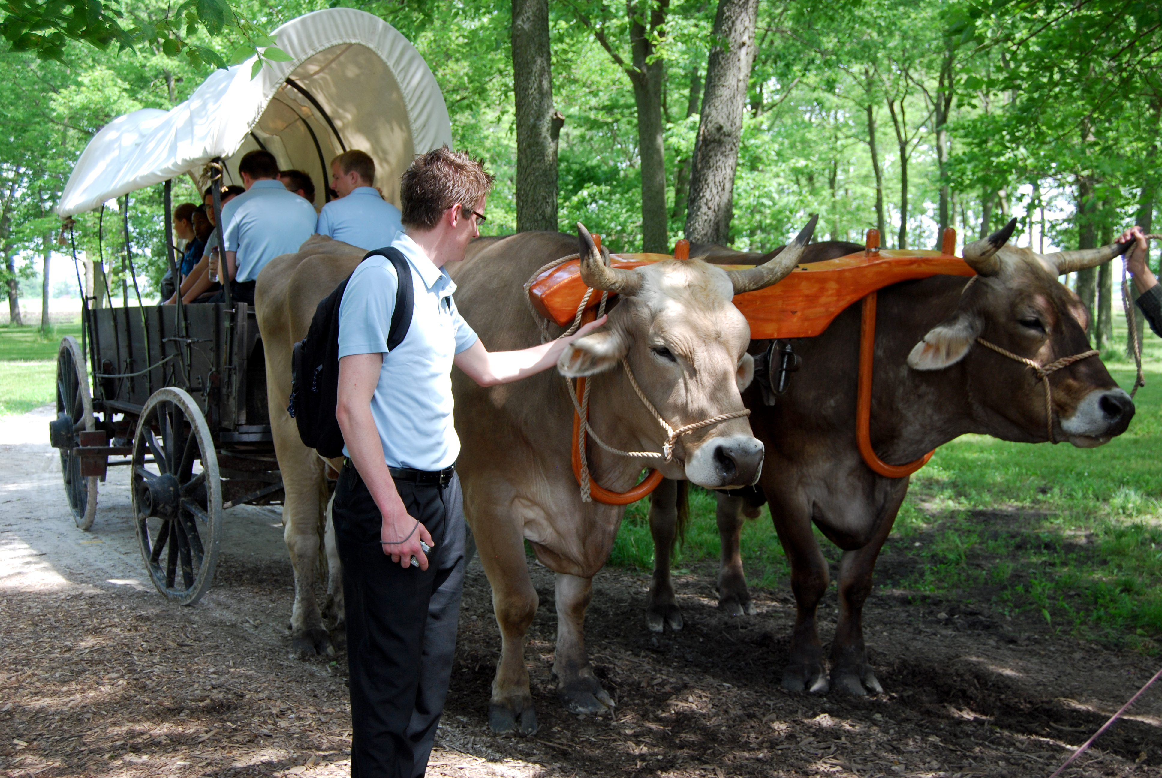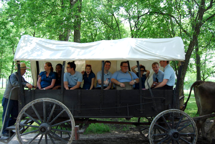 If it is your first time to Nauvoo, be sure to get tickets for the wagon ride through the Historic Nauvoo visitor center. The guides share a basic history of the city and point out the historic homes, sites and adventures you will want to take part in later. Tickets are available in the visitors center. Be sure to get tickets for a morning ride in the summer, if it gets too hot they may shut them down early for the horses. You can also get tickets for the carriage ride and oxen cart rides at the same place. The BYU Young Ambassadors also took the carriage ride while there and did a handcart trek.