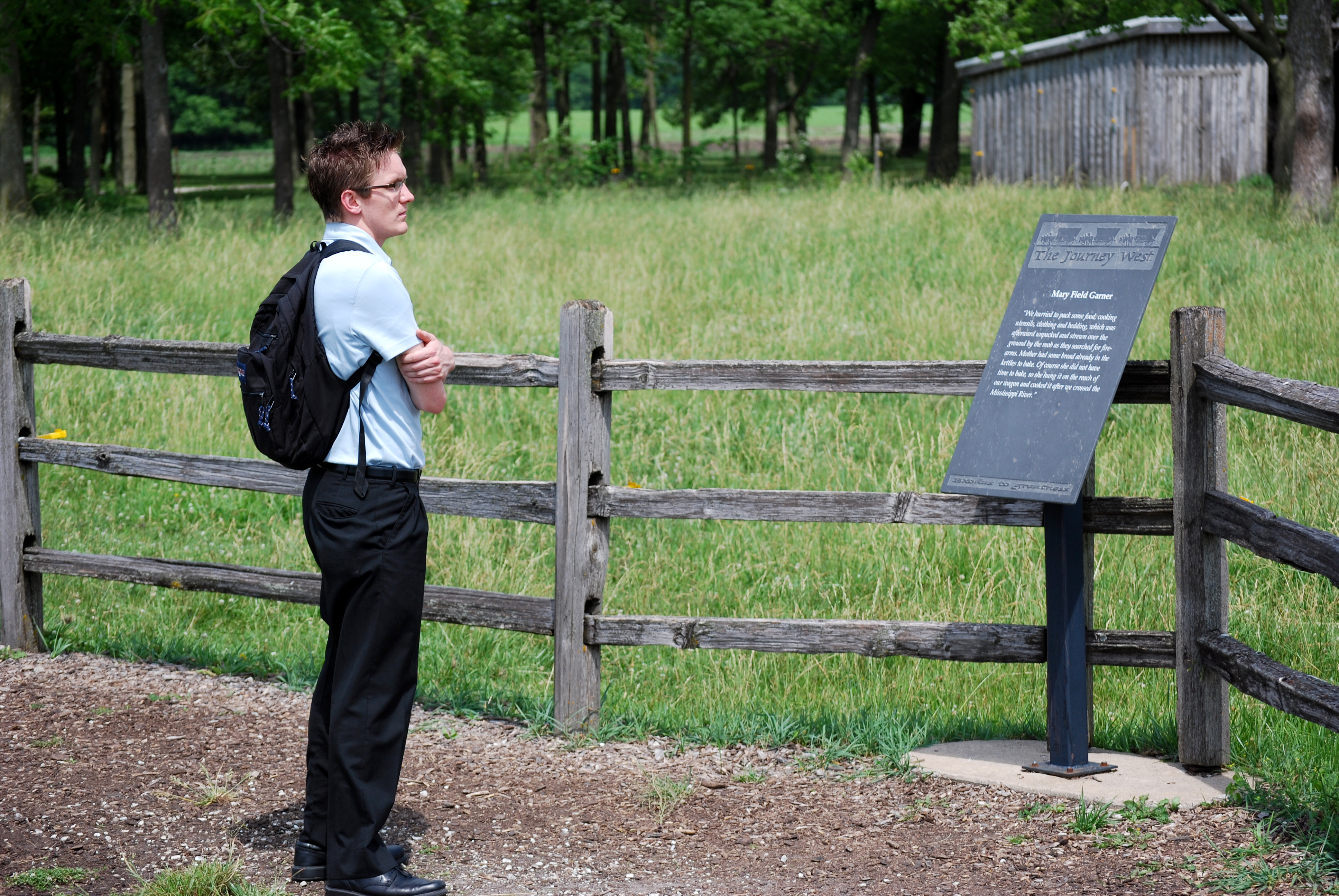 The carriage ride goes through the countryside and shares stories about individuals who once lived in Nauvoo as well as a bit about the natural side of Nauvoo. The handcart trek goes through the countryside as well cutting through horse and cow pastures, over creeks and streams, and up and down hills. Along the way are plaques giving information about the trek west as well as stories from diaries of those who made the journey.