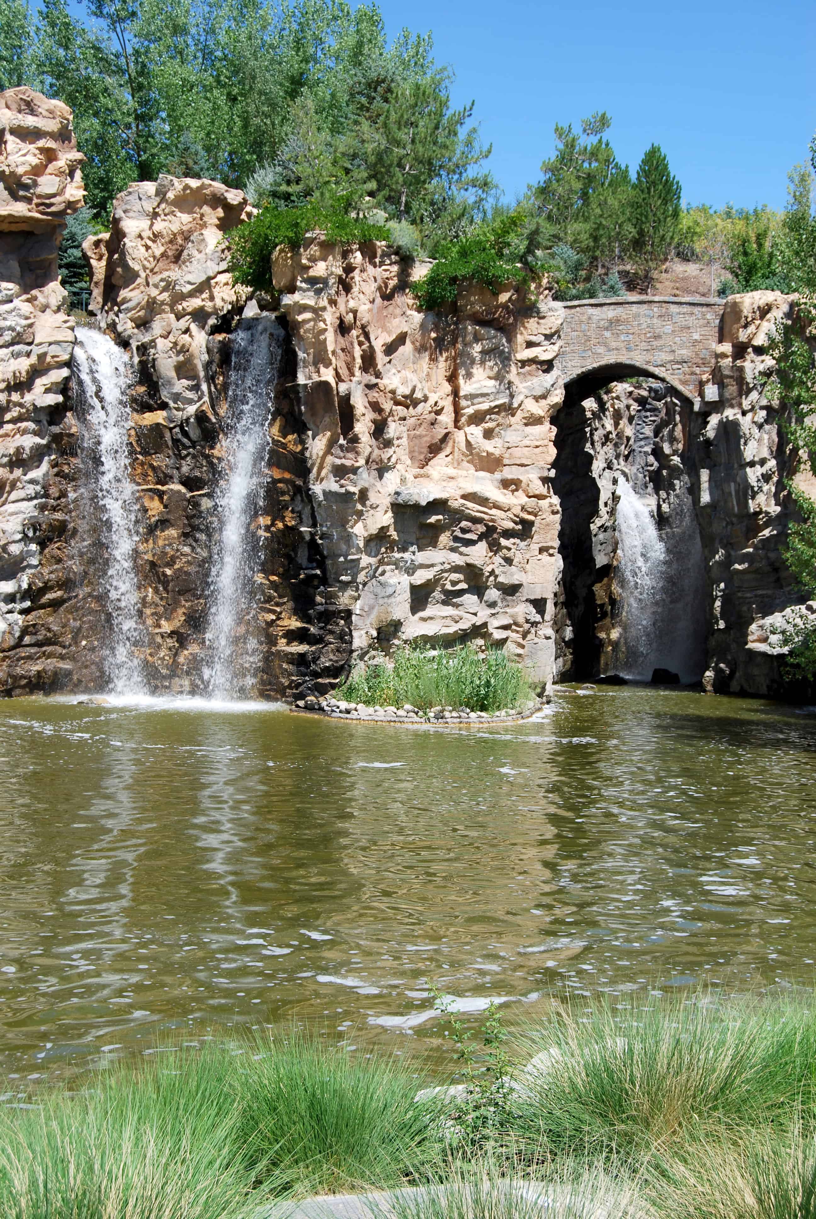 Some of the most famous features are the waterfalls, supposedly the highest man-made waterfalls there are. These falls are cascading down man-made cliffs and through man-made canyons. It is very peaceful and helps mask the sound of nearby construction and freeway traffic. The one downfall of the waterfalls is the smell of the water in and around them.