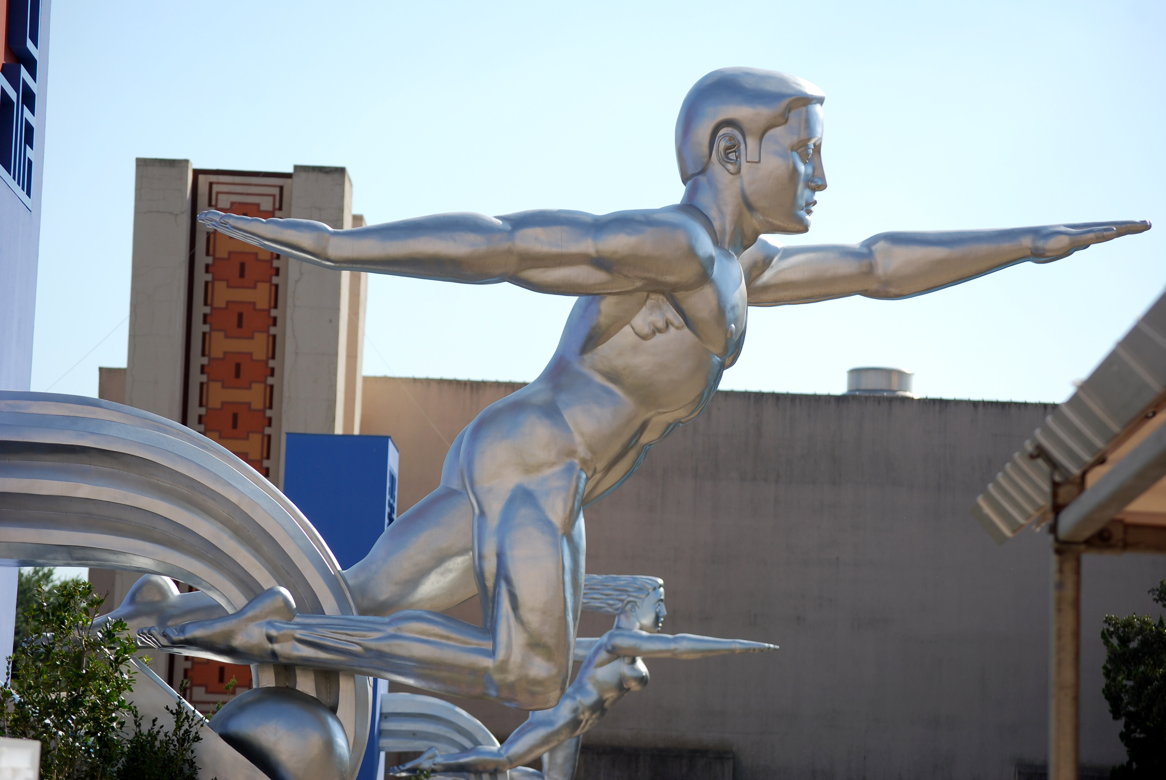 There are two big exhibition halls at what is called the Esplanade. These are all part of the 1936 Texas Centennial Exposition, so the architecture and art is pretty cool with a Texas-twist on art deco. A lot of the buildings at Fair Park were built for that expo and have pretty cool details. Ever since I can remember, the buildings on the Esplanade have housed the car displays. Every major American car manufacturer and several foreign makers, have large displays with many of their new models. There are cars spinning on turn-tables with models showing them off. There are cars climbing up towers or suspended upside down. You can get in many of the vehicles to check them out and see what it would be like to drive a car you’ve always dreamed about. I think this year, some of the makers even offered test drives at the extensions to their displays outside.