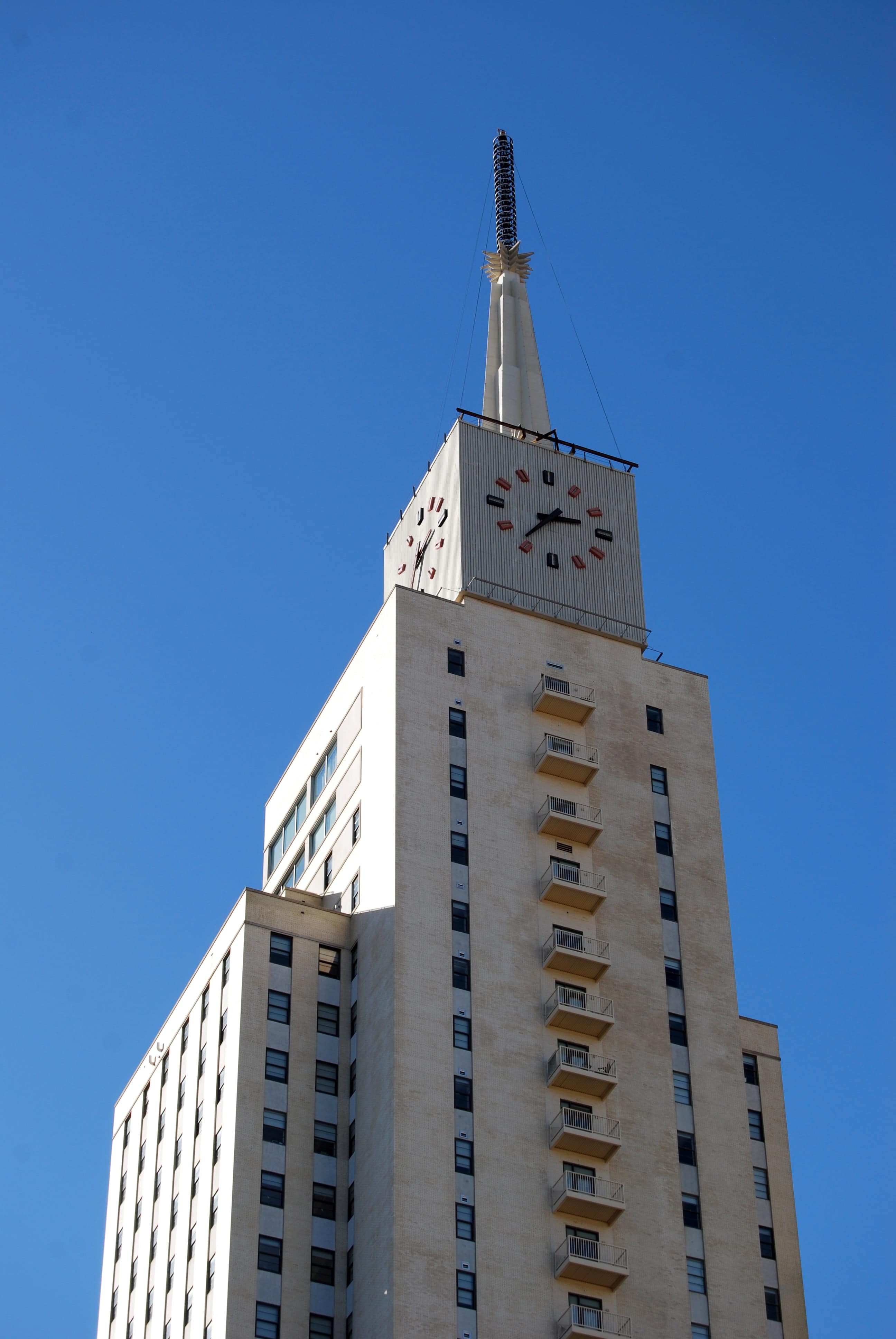 Across the street from this building is a nice city park with a dog run and café. From this point you can see a really cool mid-century clock/weather tower in the heart of downtown. This tower was added to the existing Mercantile National Bank Building that was built during WWII. Supposedly there are beautiful art deco wood murals inside. I’ll have to go back and check it out.