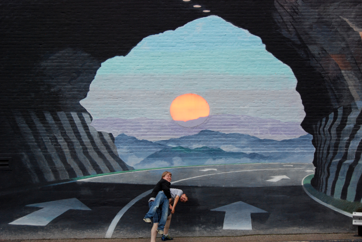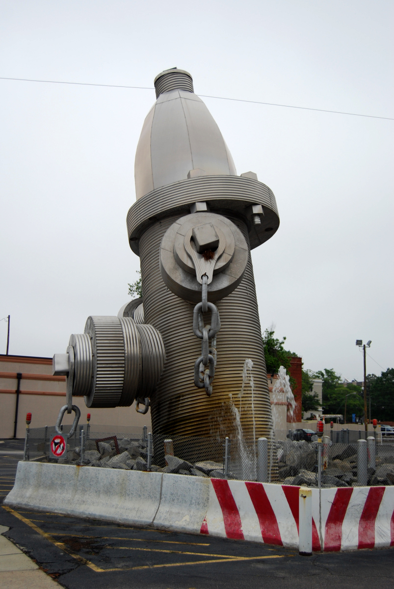 Throughout downtown Columbia many public art installations can be found and enjoyed. In one particular parking lot are two beautiful murals and an unusual sculpture of a giant fire hydrant that’s busted. The sculpture and one of the murals are by Blue Sky, an artist who has done a lot of work in Columbia.