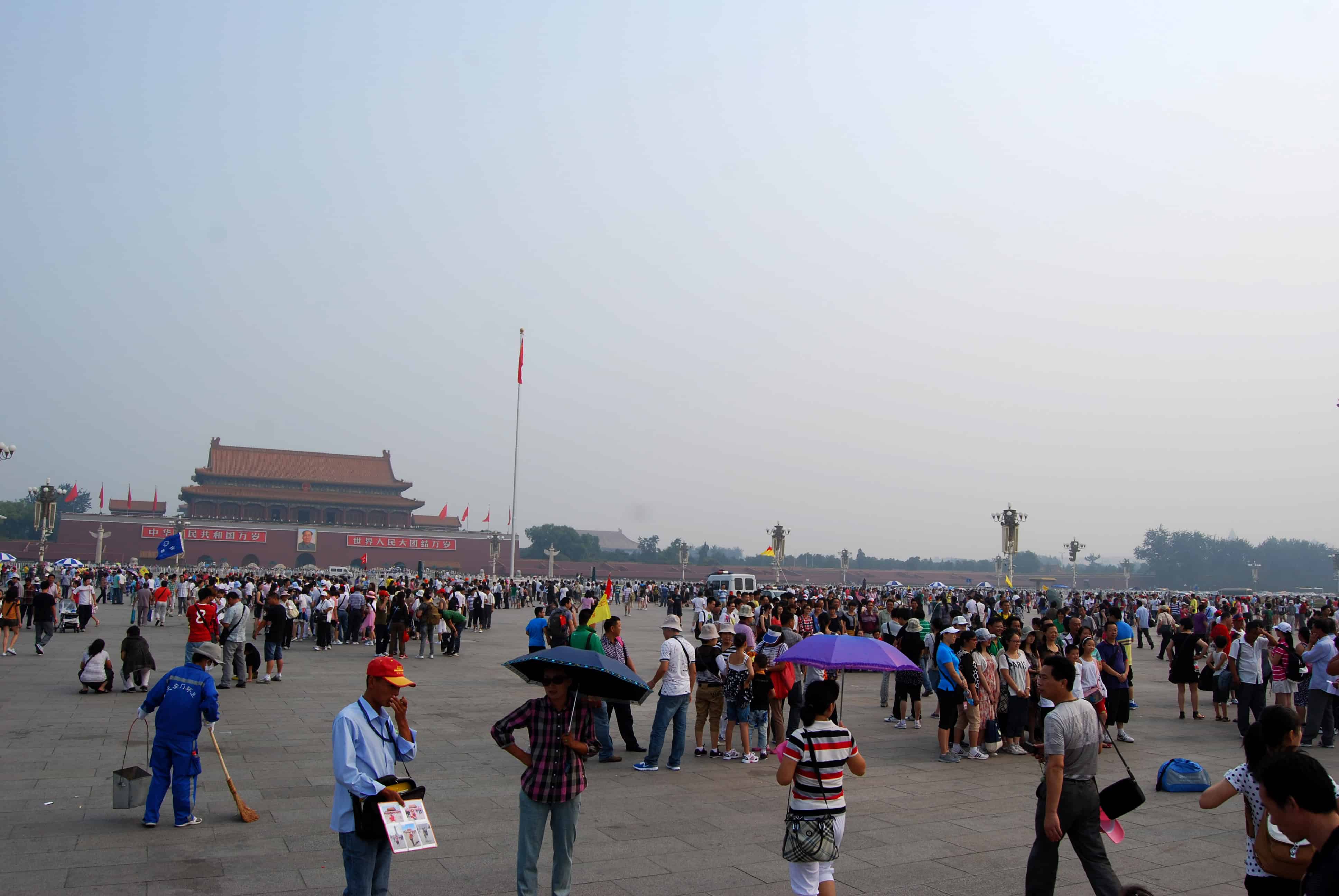 As I meandered around the square I saw hundreds of tour groups huddling together, standing erect and practically emotionless as their picture was taken in front of the Forbidden City where the large portrait of Chairman Mao overlooks the square. Many of the the tour groups wear matching hats making it covered in colored polka dots. I also noticed people taking pictures of me and watching me through binoculars. I only got a little attention unlike the girls in our group with blonde hair who were practically mobbed for pictures.