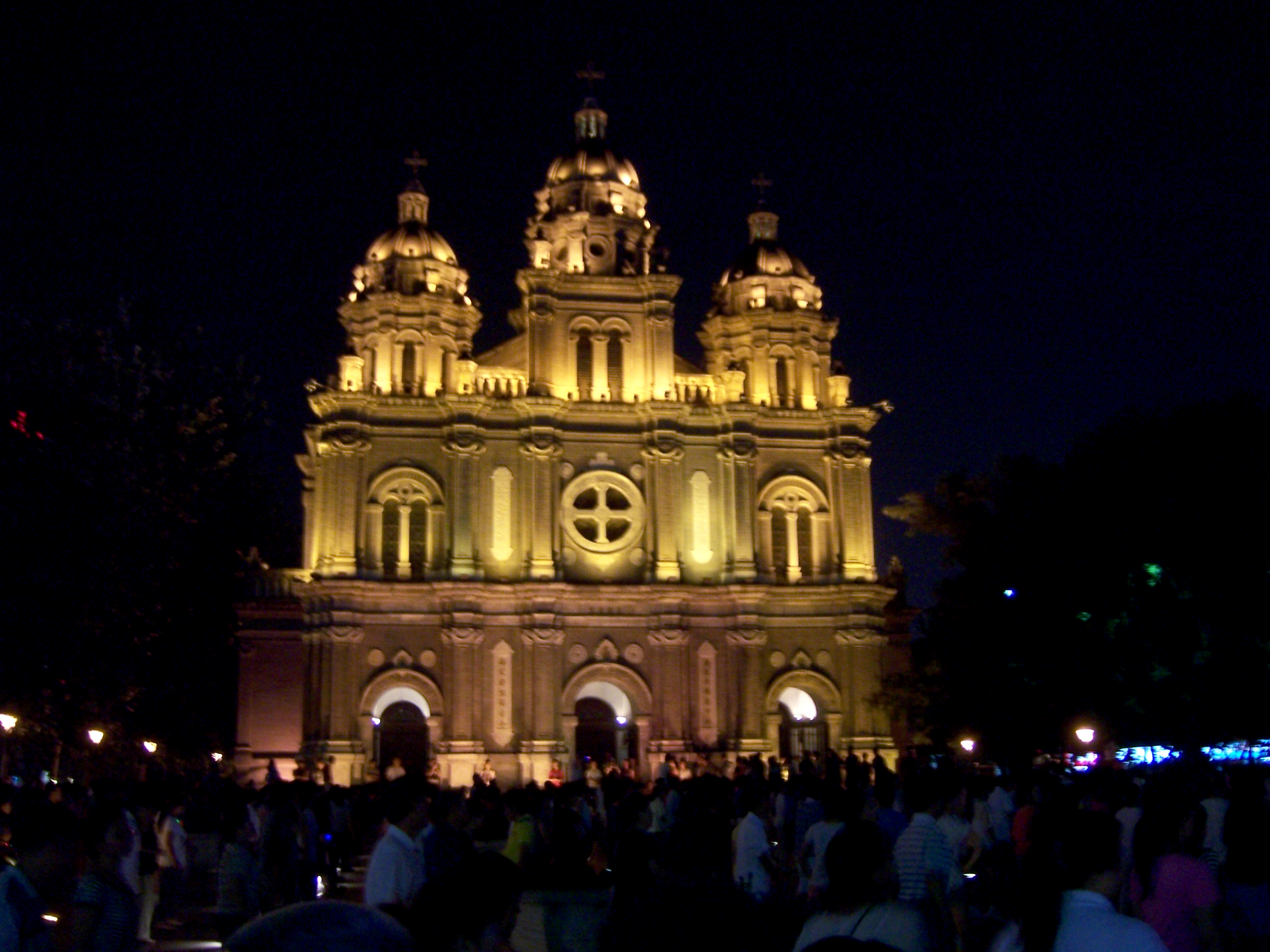 From the little restaurant we ate a delicious dinner we walked up a few block to find St. Joseph’s, a catholic cathedral in Beijing originally built in 1655 but destroyed over and over again then finally restored in 1904 and then closed in 1966. This is a happening place. Each night in the plaza in front of the church hundreds of people gather to dance. They don’t do any spectacular dances but a very simple line dance over and over and over again to every song that’s played.