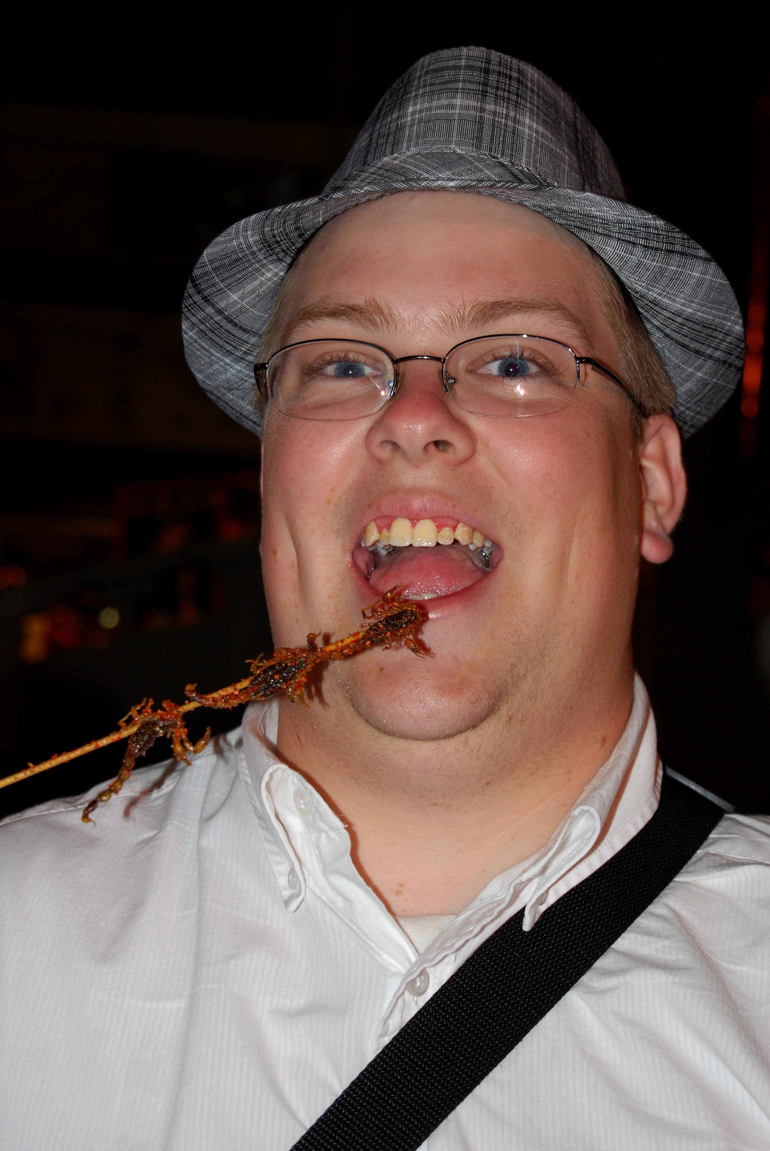 You ate scorpions, whole?! Yuck! Where did you get the hat?