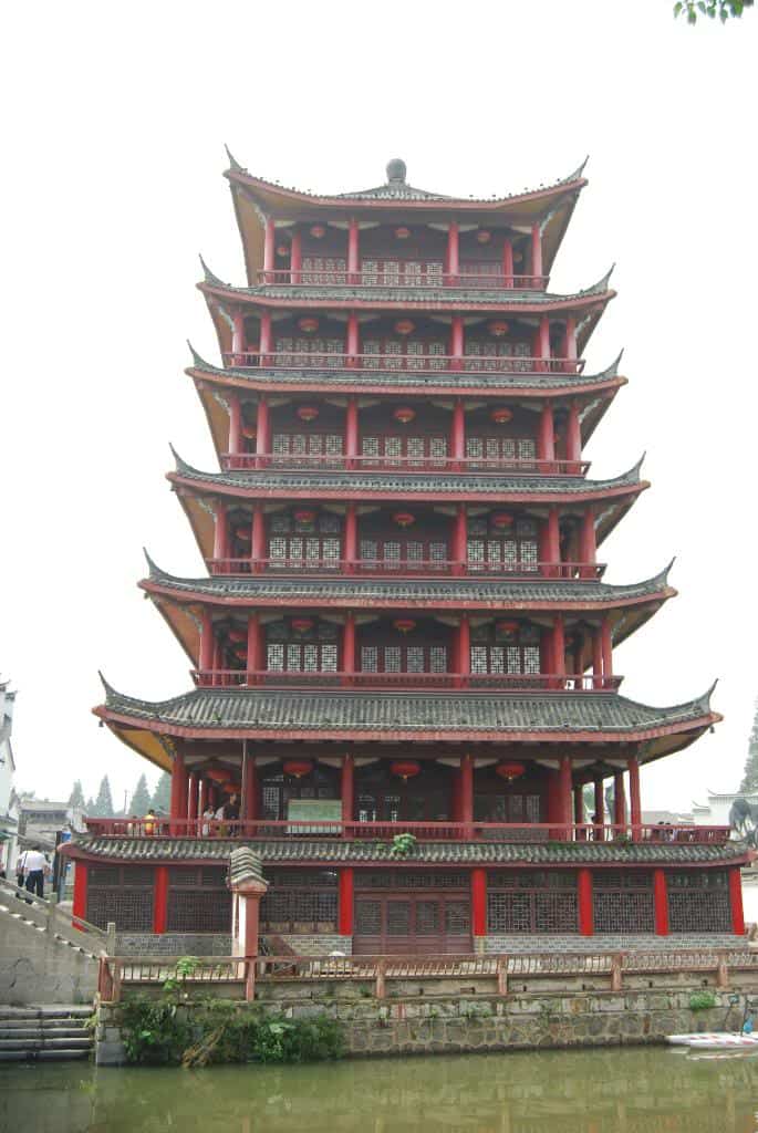 That’s when we found the first of the three rivers (Sanhe means three rivers) with beautiful stone bridges arching over and a tall pagoda on the bank. It was beautiful. We decided to climb up this pagoda that was seven stories high with itty bitty steep stairs to get views of the whole town. This town isn’t only famous because of the bridges but because of the architecture that is unique to the buildings of Sanhe.