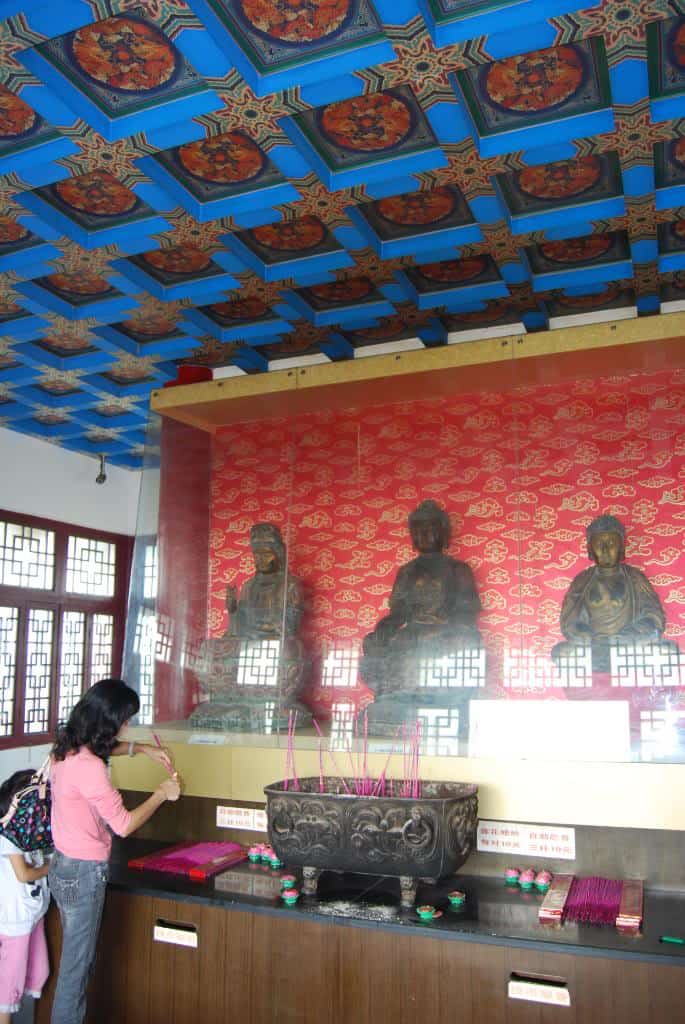 As I hiked up the steep stairs, I noticed a sweet fragrance on the air. When I reached the top I found out where it came from. The top floor had several effigies of Buddha and you could pay to burn incense or light candles.