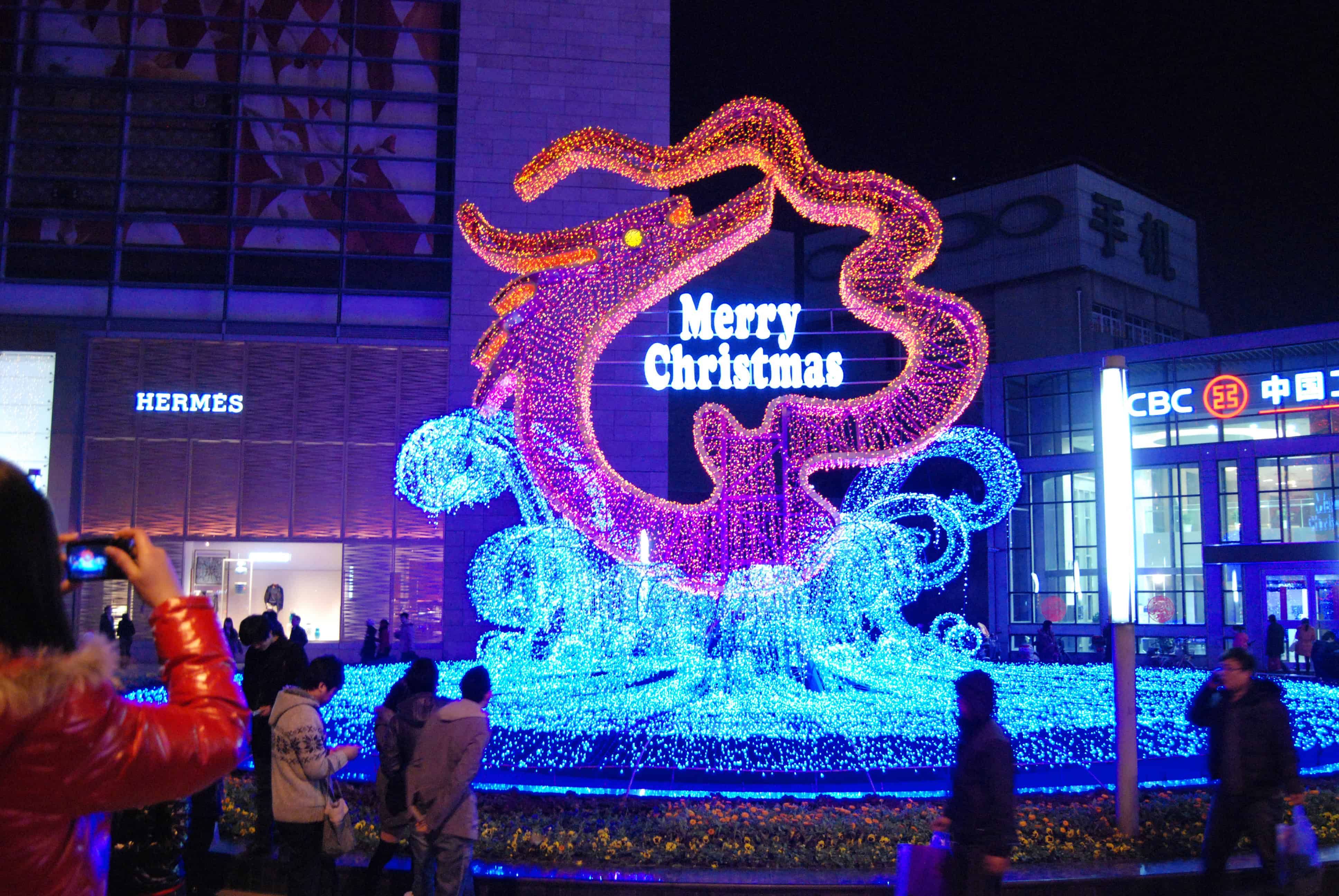 There are tons of Santa decorations and tinsel everywhere. They even play Christmas music on the sound systems of the stores and malls, though it is often just a few songs repeated over and over again. I didn’t expect this much Christmas in China or at least in Hefei and I really didn’t expect religious stuff, but the songs included renditions of many religious carols.