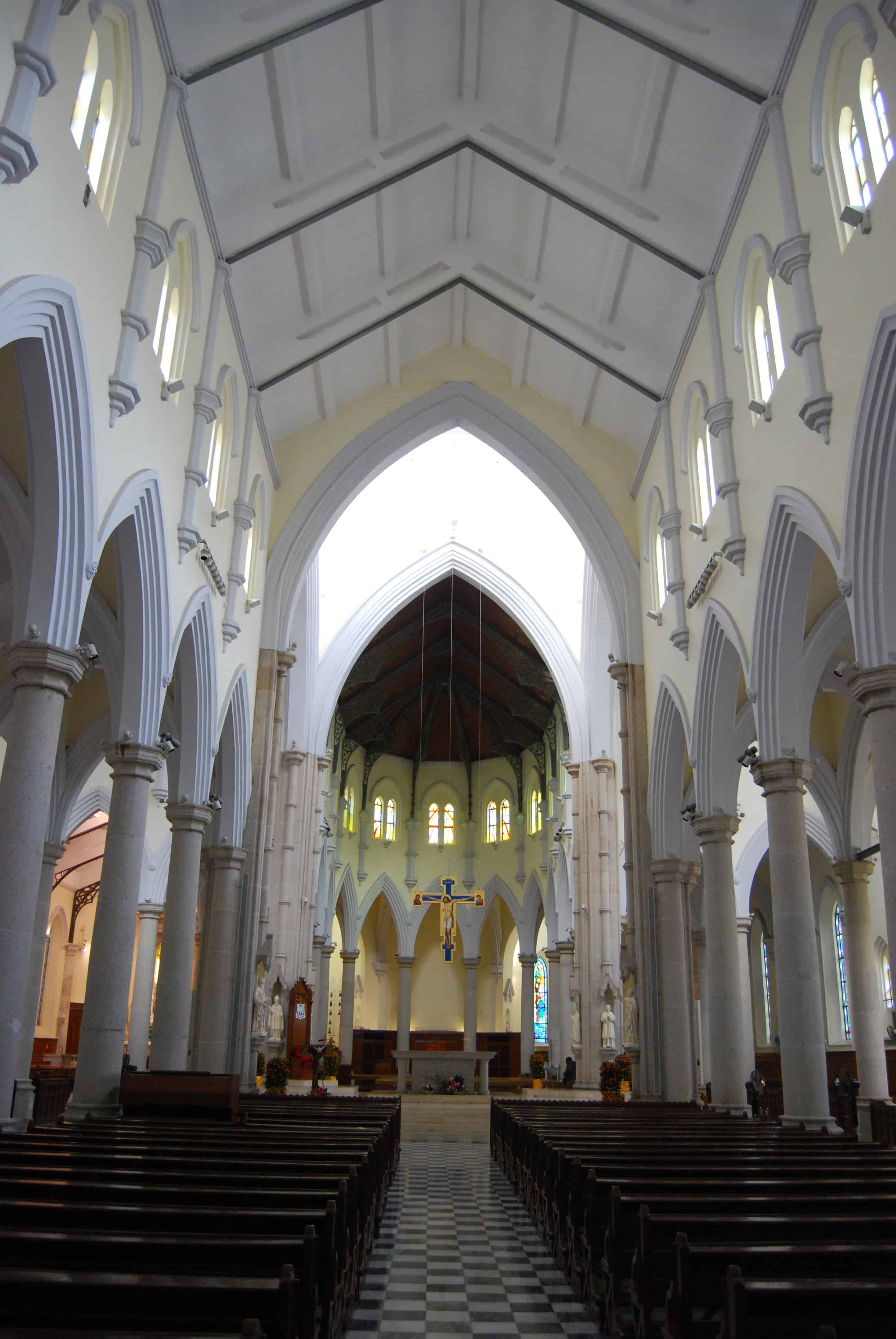 The next of our destinations was a series of religious buildings, none traditional Chinese, scattered around the area from the last 200 years. We found the Anglican cathedral easily just down the hill from the gardens, but couldn’t go inside at first because of a funeral. It is a simple yet elegant building. The most unique feature I saw is one set of stained-glass windows about fishermen. In the middle was Jesus with his fisher disciples, on one side was a window with British fishermen and on the other Chinese fishermen with their sampans.
