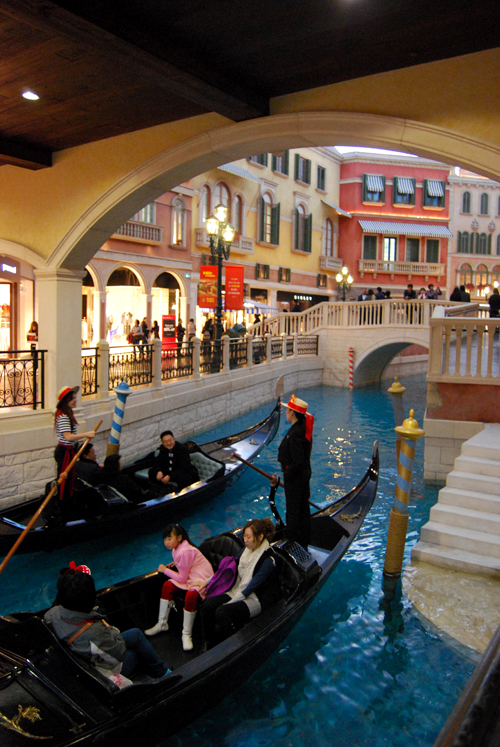 Before we headed back to the ferry terminal to catch a boat to Shenzhen, we wandered the Venetian and had dinner in the food court. It is beautiful inside with the full ceiling frescos and rich architectural elements and has the signature canal. Biggest difference was the Chinese girl gondoliers with Italian names.