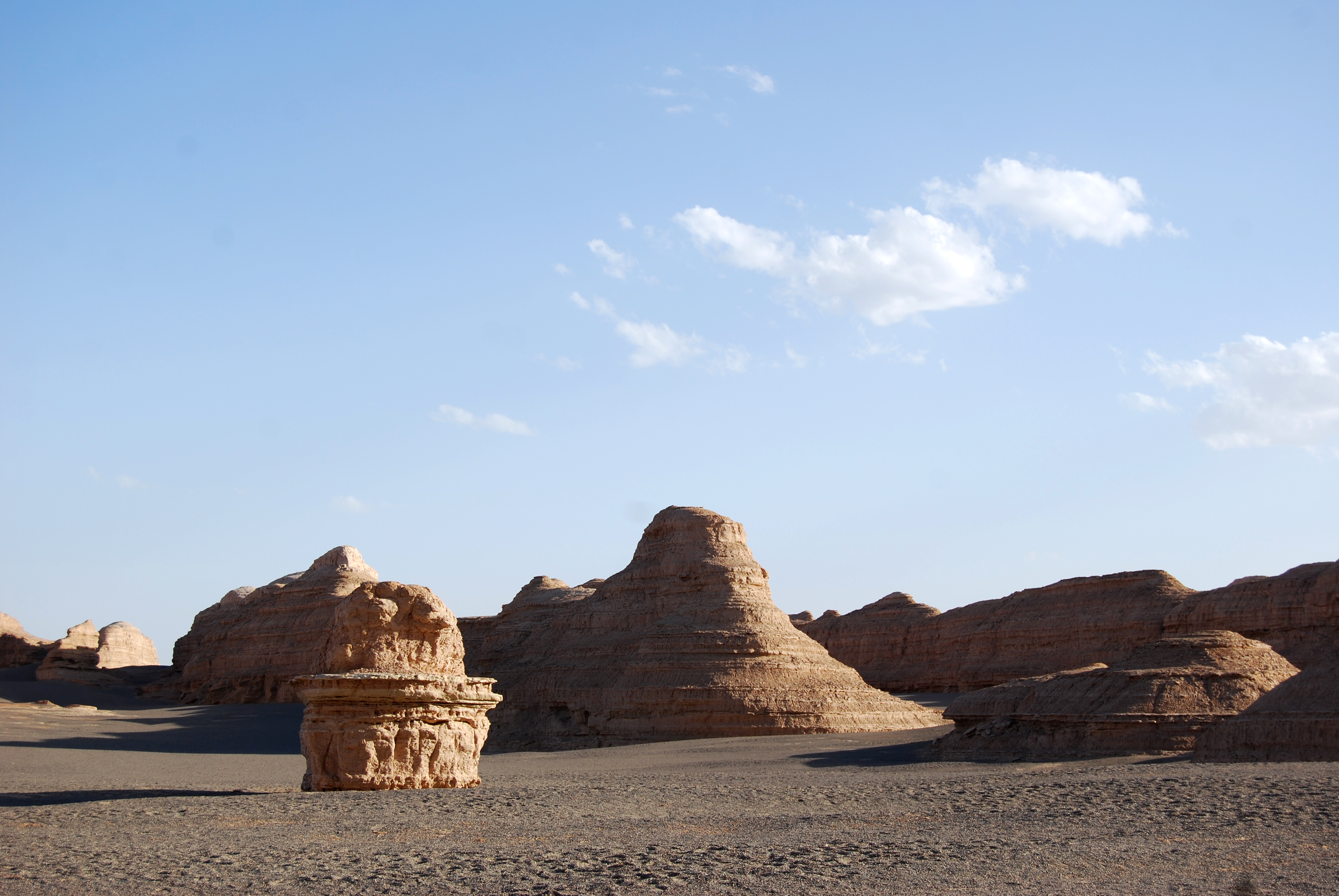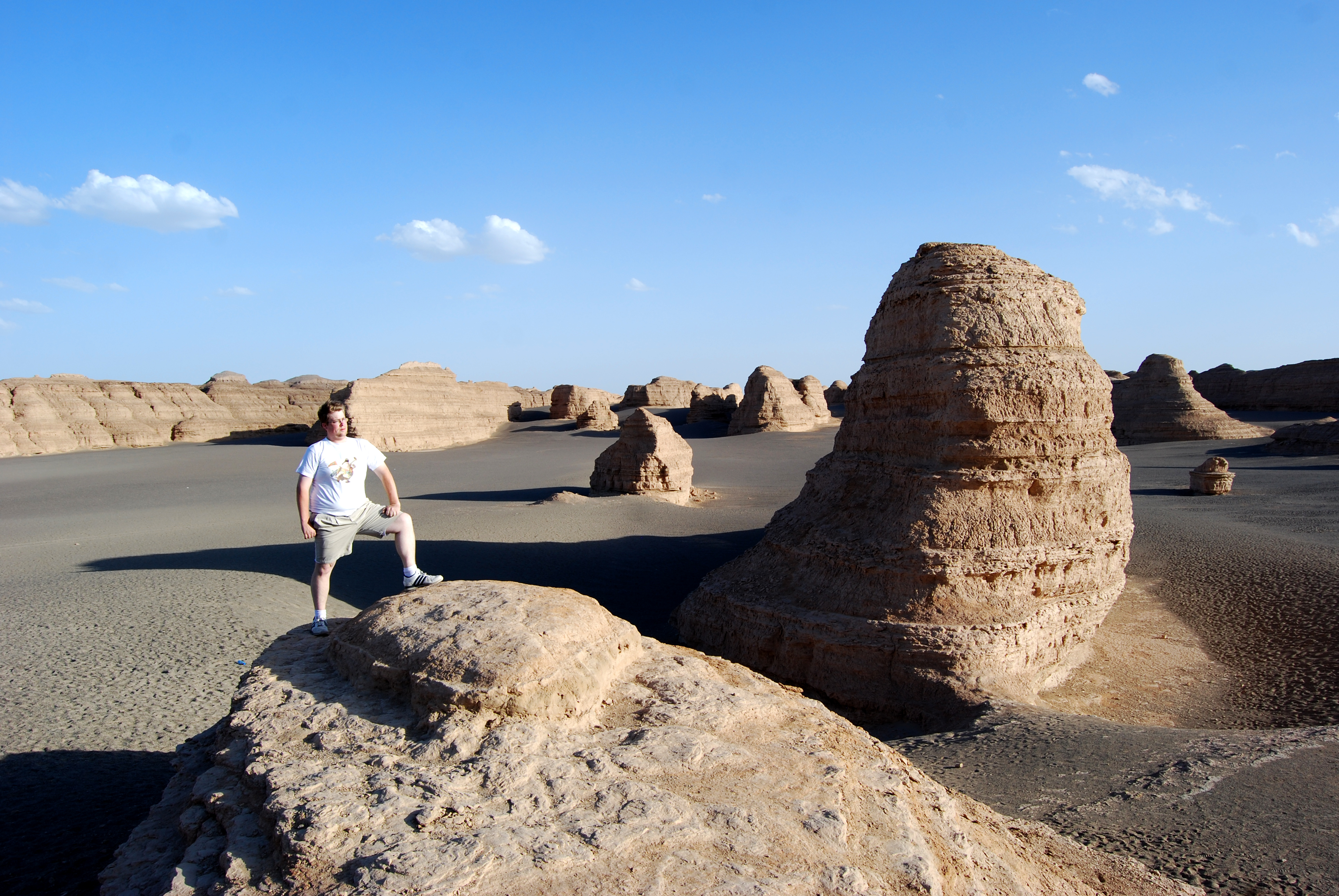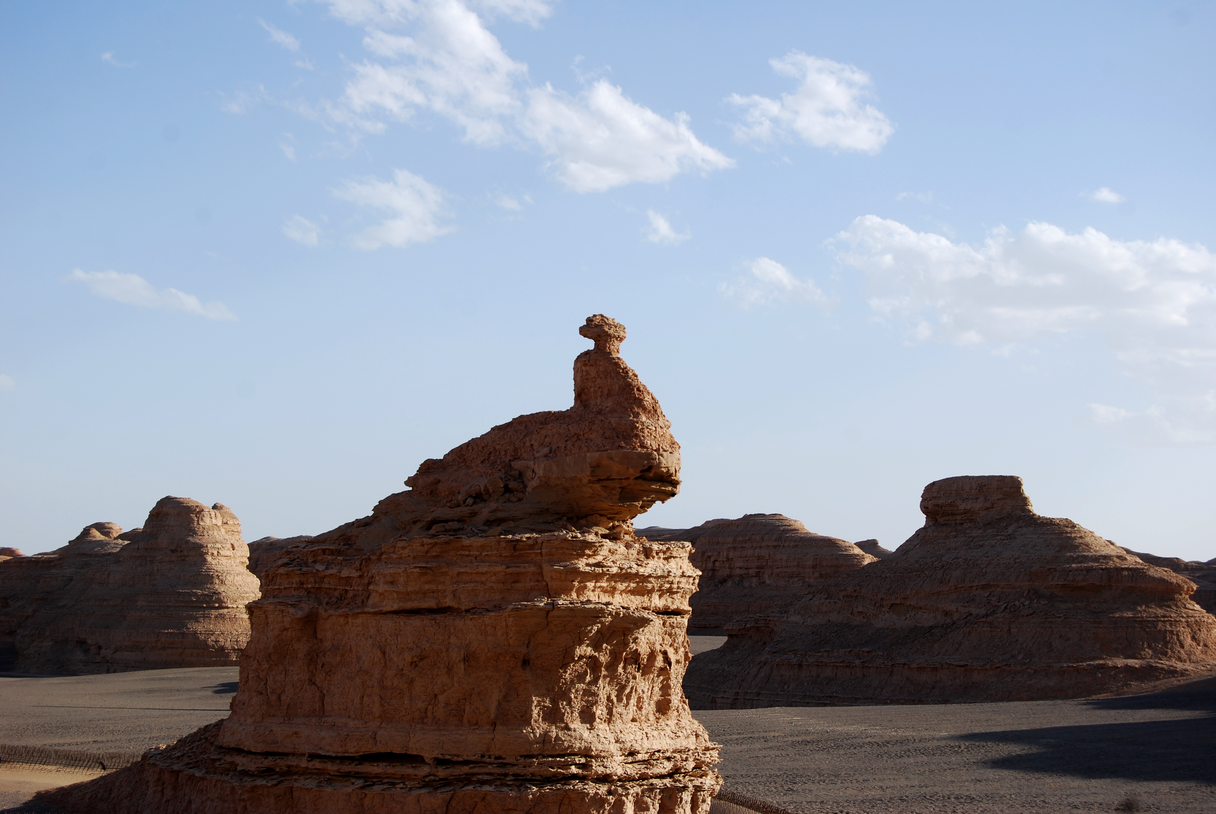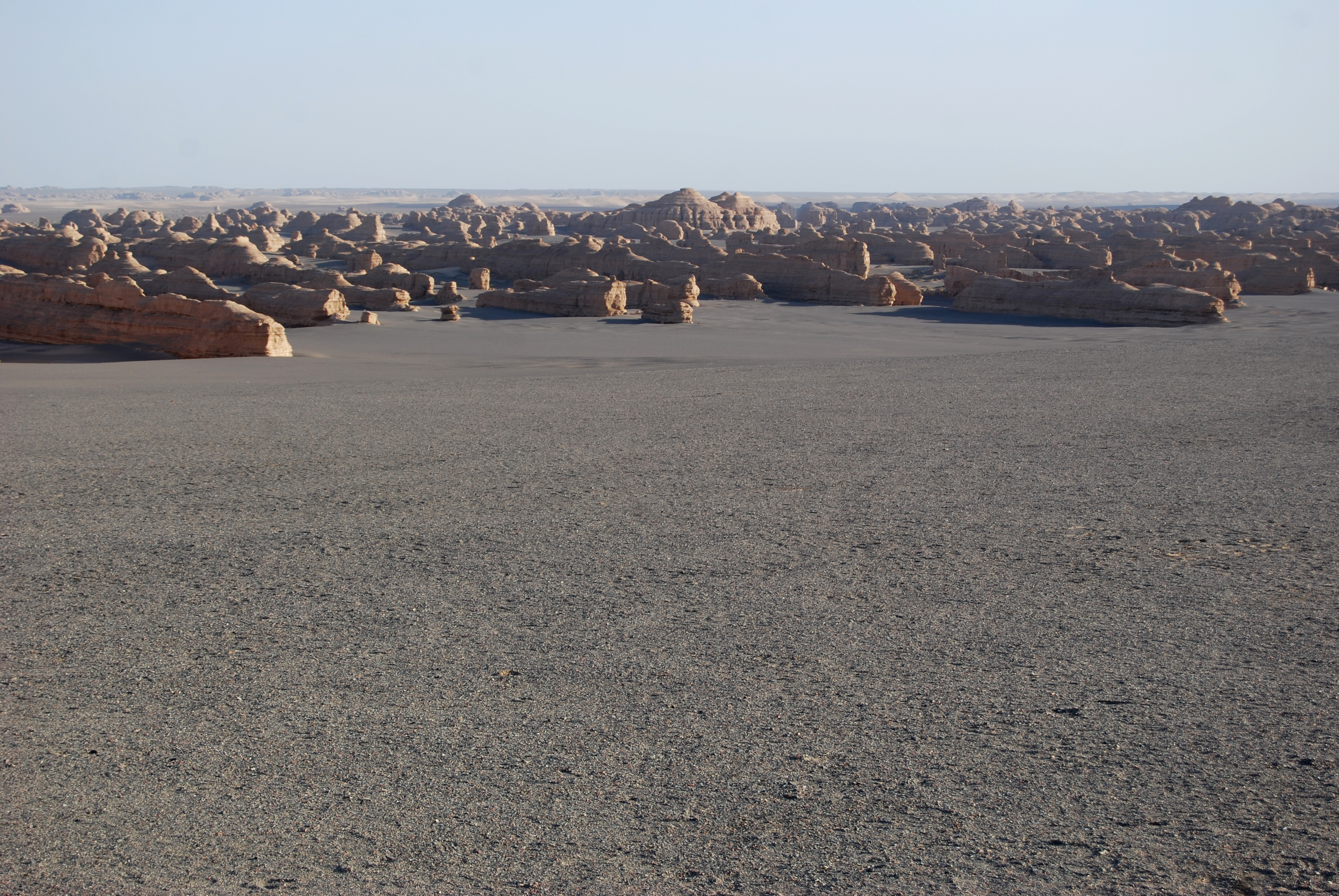 Right at the edge of Gansu province and Xinjiang province is an ancient lake bed with the look of a distant planet that has been used to set the scene for different movies most notably Zhang Yimou’s Hero. In some places there are miles of nothing but pebble flats. In other places there are rock formations caused by centuries of erosion.