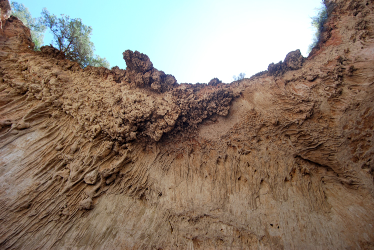 At the opposite end from where I entered, the outlet of the stream and inlet of the breeze, there is a steady trickle of water dropping over the mouth from long chains of moss and ferns. I imagine that during a wetter time of year or just after rain this is a magnificent waterfall. There is an observation deck at this side too that is the end of the trail from the other side of the bridge. That is the trail I took back up.