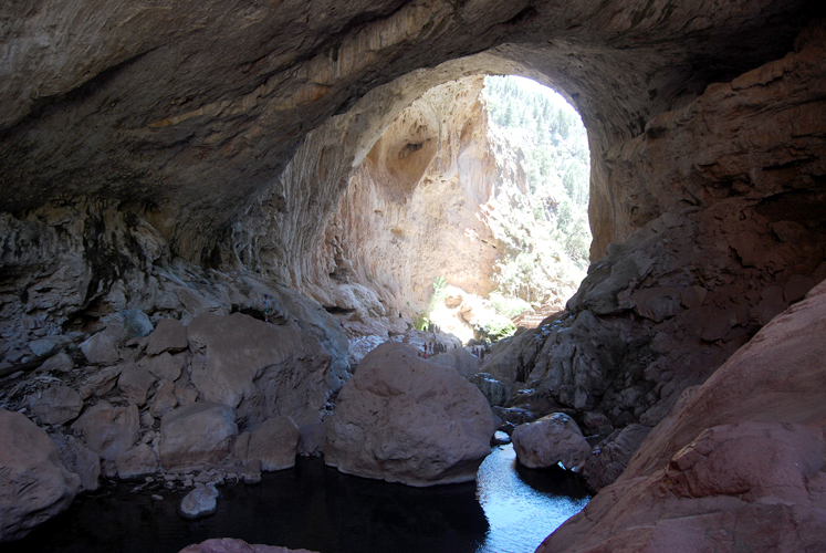 Although I knew there would be a natural bridge at the end, I did not expect to see a ginormous cavern gaping before me. It made me stop for a moment in wonder. This time of year, when the water is low, I could enter the bridge from this side and climb through it. Again, when there’s more water this may not be allowed.