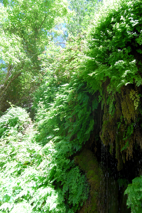 On top, there are overlooks to get views of the bridge from both sides and multiple angles. I also took the waterfall trail that takes you a couple hundred feet to an extremely lush cliff face that is constantly draining water over its dense cover of fern, blackberry and a lovely dainty yellow flower.