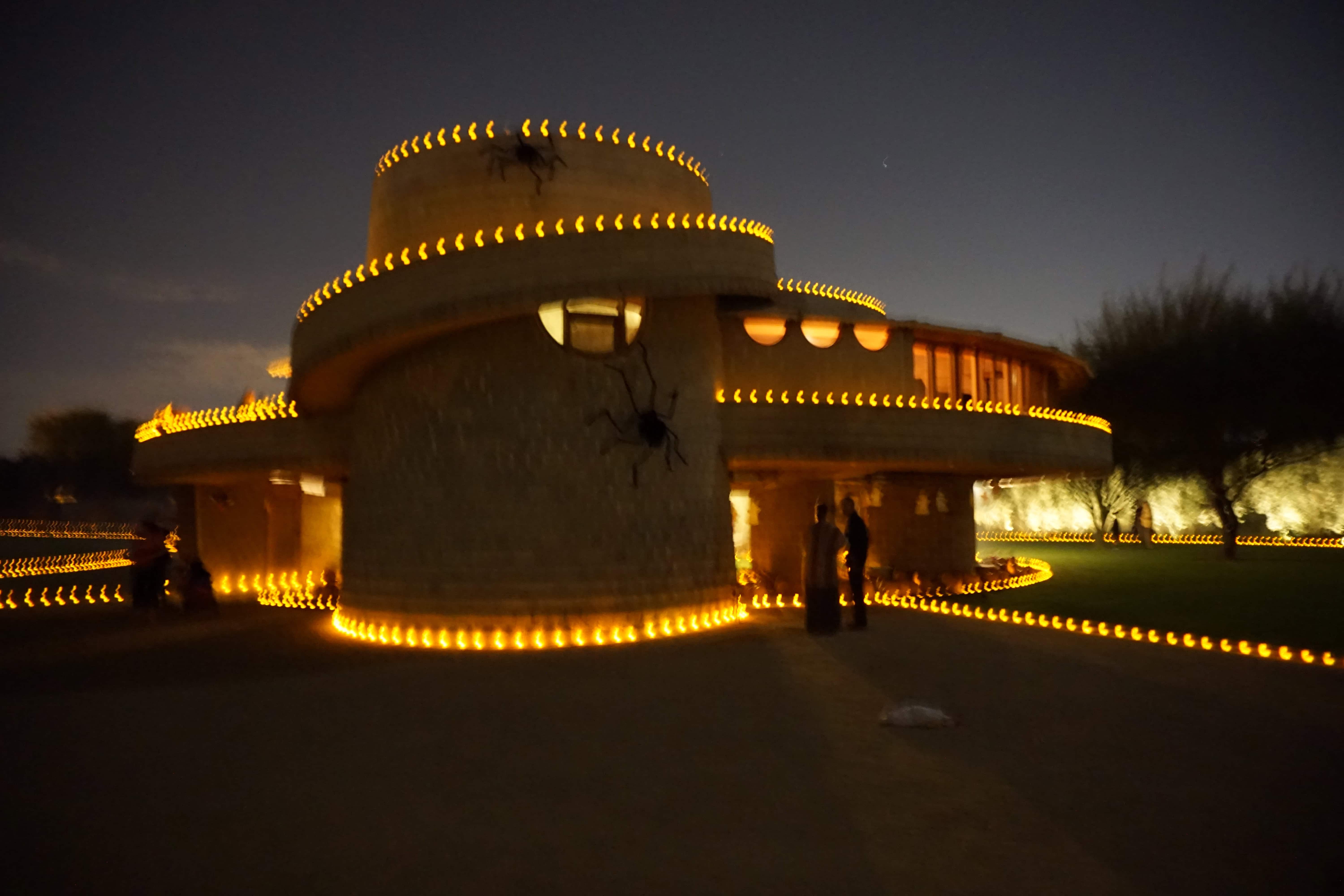 This year for the spooky holiday, the David and Gladys Wright House Foundation decided to invite some neighbors over for a festive evening, two actually. First, a few days before All Hallows Eve, they invited an entire local elementary school to drop by for some fun including getting some goody bags. I wasn’t there for that, but I was invited to come Halloween night for their house warming Halloween party.
