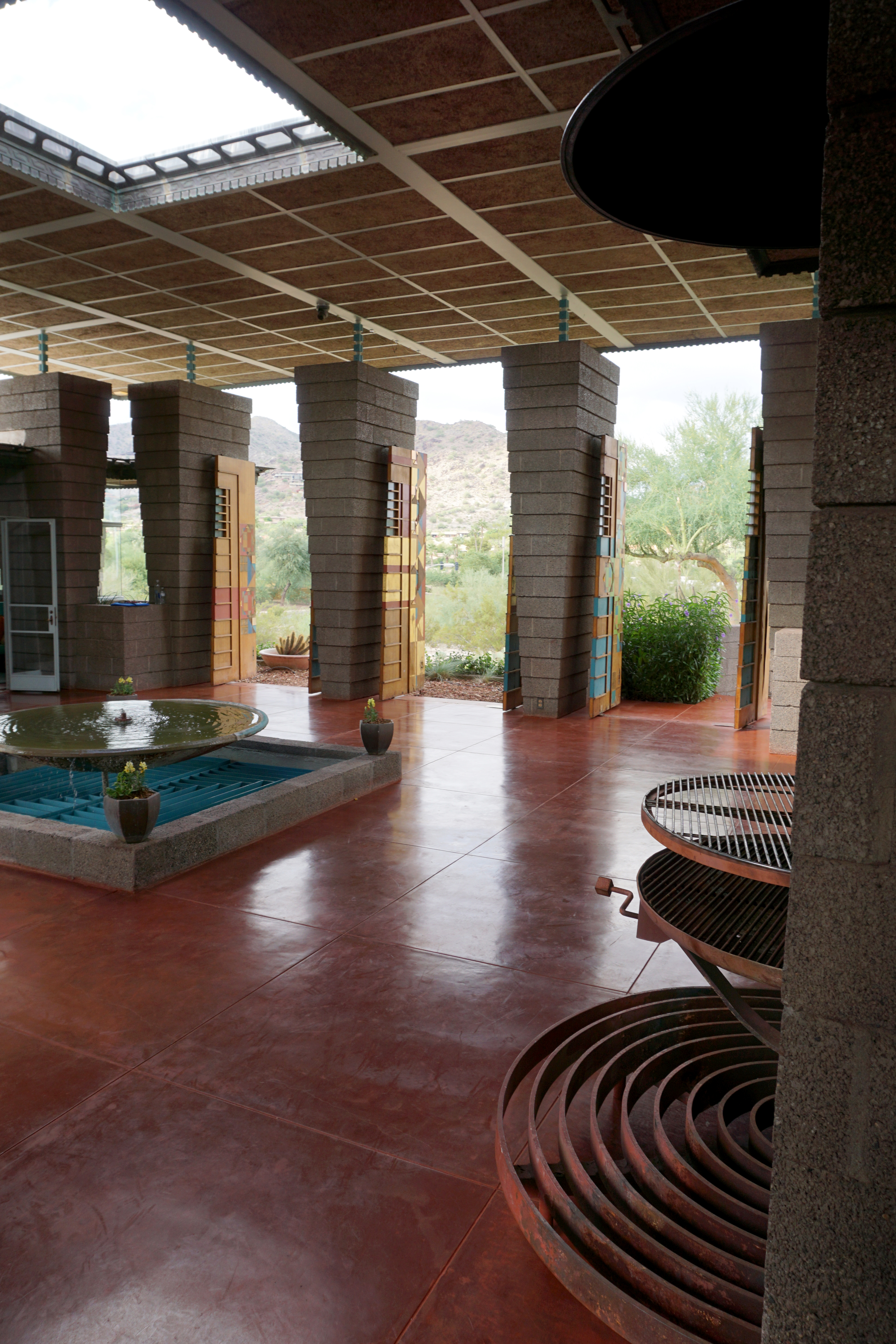 Wow! That’s most people’s reaction when they visit this spectacular Frank Lloyd Wright-designed home in Paradise Valley, Arizona. When volunteering for the Frank Lloyd Wright Building Conservancy 25th Anniversary Conference recently, I got to visit this beautiful residence for a second time. The first was for the Frank Lloyd Wright Foundation’s board dinner in April (I was a van driver) when I didn’t have a good camera with me, so I didn’t write about it until I could get some good images to share.