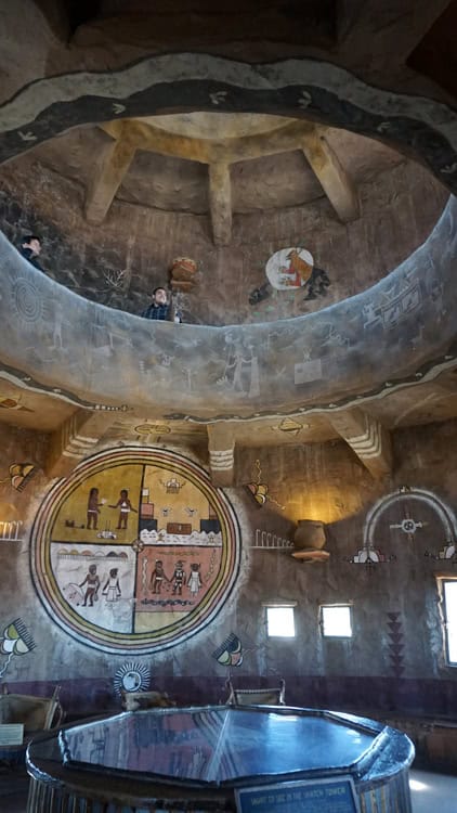 That tower was my next destination. I was ready to be critical of how it ruined the canyon being built right on the edge, but quickly changed that opinion as I fell in love with Mary Jane Colter’s fabulous piece of architecture—the Desert View Watchtower. This National Historic Landmark was inspired by all of the ancient southwestern architecture and cultures. It was designed to look like a relic itself though under the façade is a steel frame.