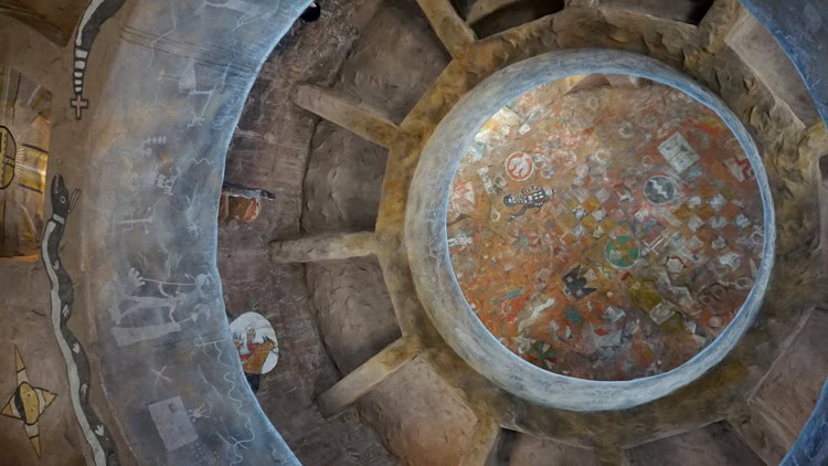 With sections appearing to be repairs and alterations, she gave the structure a fantastic feeling that it is as old as the canyon itself. Of course she also used natural materials from the site to achieve the final result. In addition to the architectural influences from the ancestral people of the region, she also took inspiration from their art and the art of their descendants.
