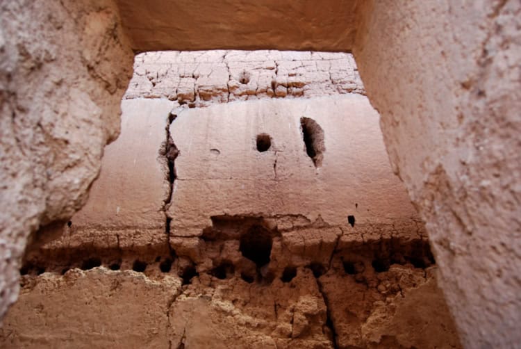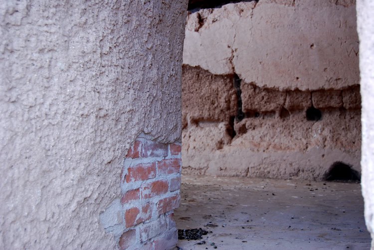 The crowning piece of the monument is a large, multi-story structure that is under a pavilion cover. The cover was put over the large house decades ago as a way to preserve the dirt structure, but it kind of ruins the ruins even in the effort to preserve them. It’s as if we were to take big awning to cover the cliff dwellings at Mesa Verde. You can also see pieces of various restoration efforts over the decades as materials were replaced, rods and supports installed and more.
