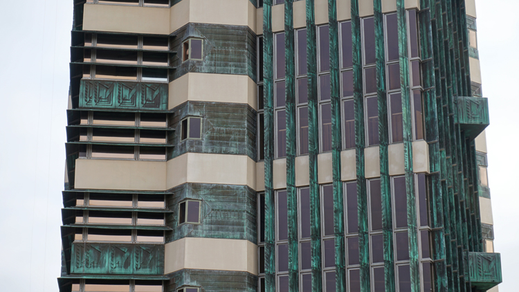 In the early 1950s, the Prices who had seen a lot of success decided it was time to build a new building. The Prices’ two sons were taking classes from renowned modern architect Bruce Goff who recommended they speak with Frank Lloyd Wright when he visited for a lecture. When Price met with Wright they decided on a 19-story multi-purpose high rise structure adapting a design from an unrealized project of Wright’s that would have been built in Manhattan.