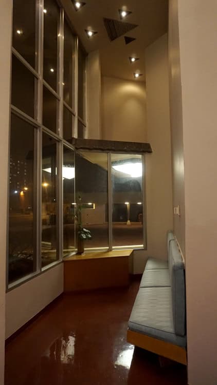 I stayed in one of the converted office spaces on the 8th floor on the northeast side of the tower, so my views were of downtown Bartlesville. The room was lovely and modern being inspired by the building’s design but not copying it. This is where I really experienced the way he used the space and created a feeling with his tree-type building.