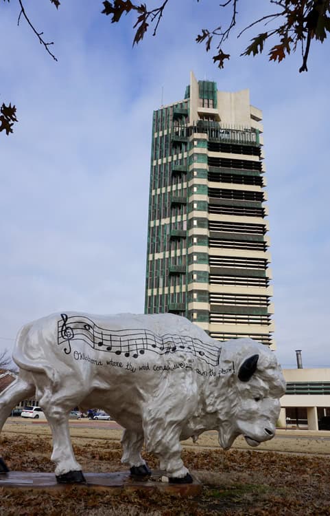 If you have time for more in Bartlesville, visit some of the Bruce Goff designs and visit the Phillips home and the Phillips Co. museum. When I was done at the tower I found my way to Frank Phillips’ ranch called Woolaroc. More about that in the next post.