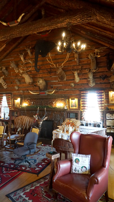 Anyway, his lodge is a big log and stone structure decorated throughout with animal trophies. Interestingly, none of the animals were trophies from hunting but died of natural causes. As the docent told me, all but a handful had lived on the property at one point including a lion that retired from the circus. When an animal died at the ranch, if it were a particularly beautiful specimen he had it prepared for the wall.