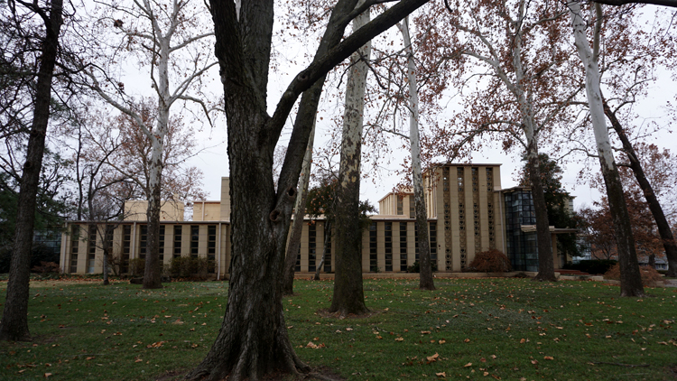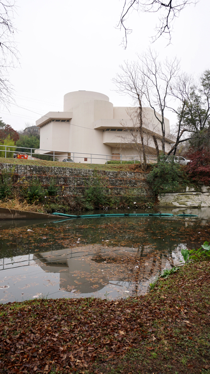 This building was designed by Wright in 1955 and opened to the public in 1959. It is built in the Turtle Creek neighborhood on the hill just above the creek. I’ll be honest that it isn’t the most striking building I’ve ever seen, but I’ve been told that it has undergone extensive additions and changes after Wright’s death, some of them under the guidance of Wes Peters and Taliesin Architects.