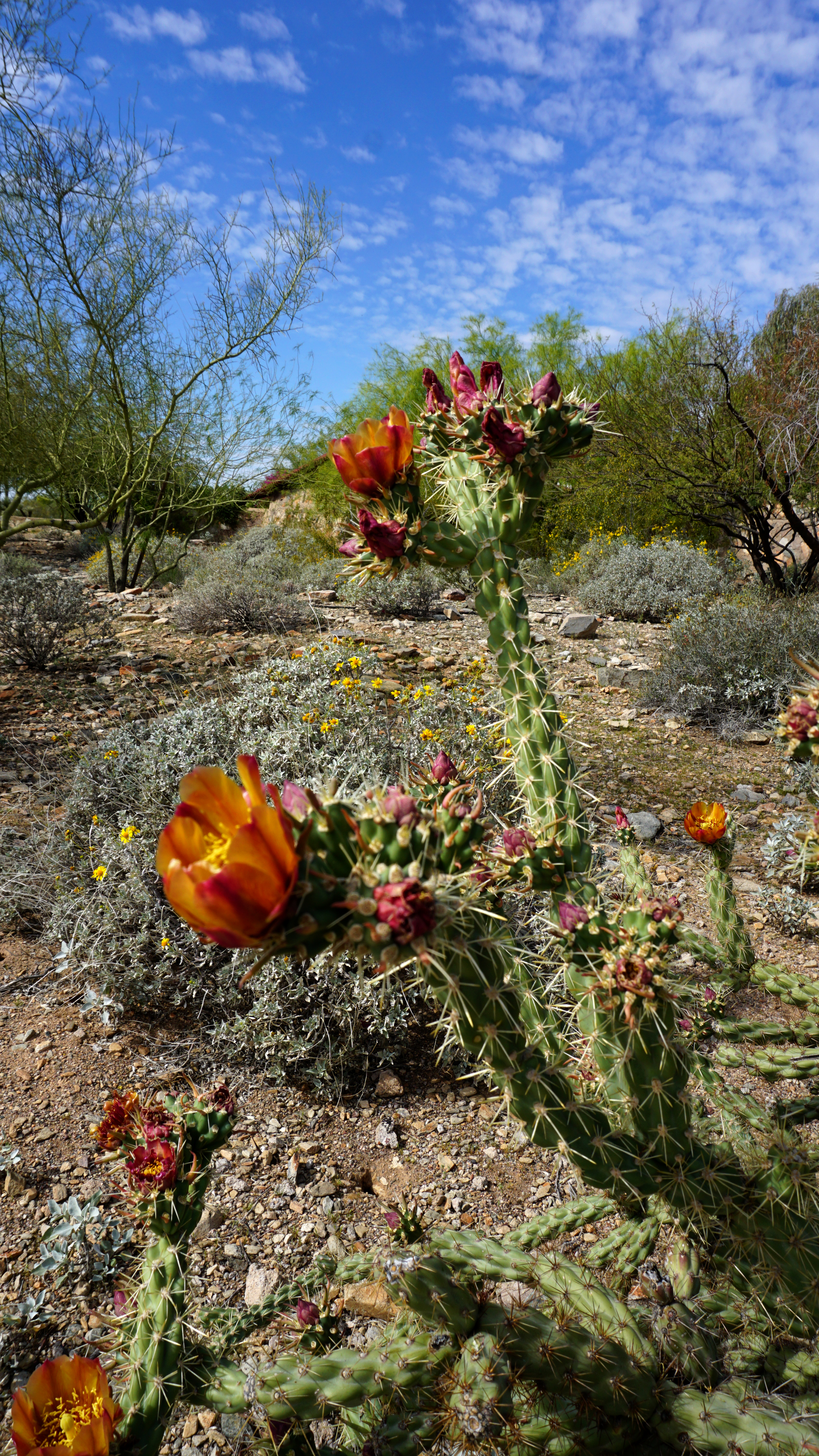 The Sonoran Desert may seem dry and droll when looked at in pictures most of the year, but for a handful of months during winter and spring the desert is one of the most spectacular places to explore with cacti and trees all blooming in sequence in a variety of colors. In addition to house tours, I had the awesome job of taking people into the desert to show off this beauty and why Wright was drawn to it.