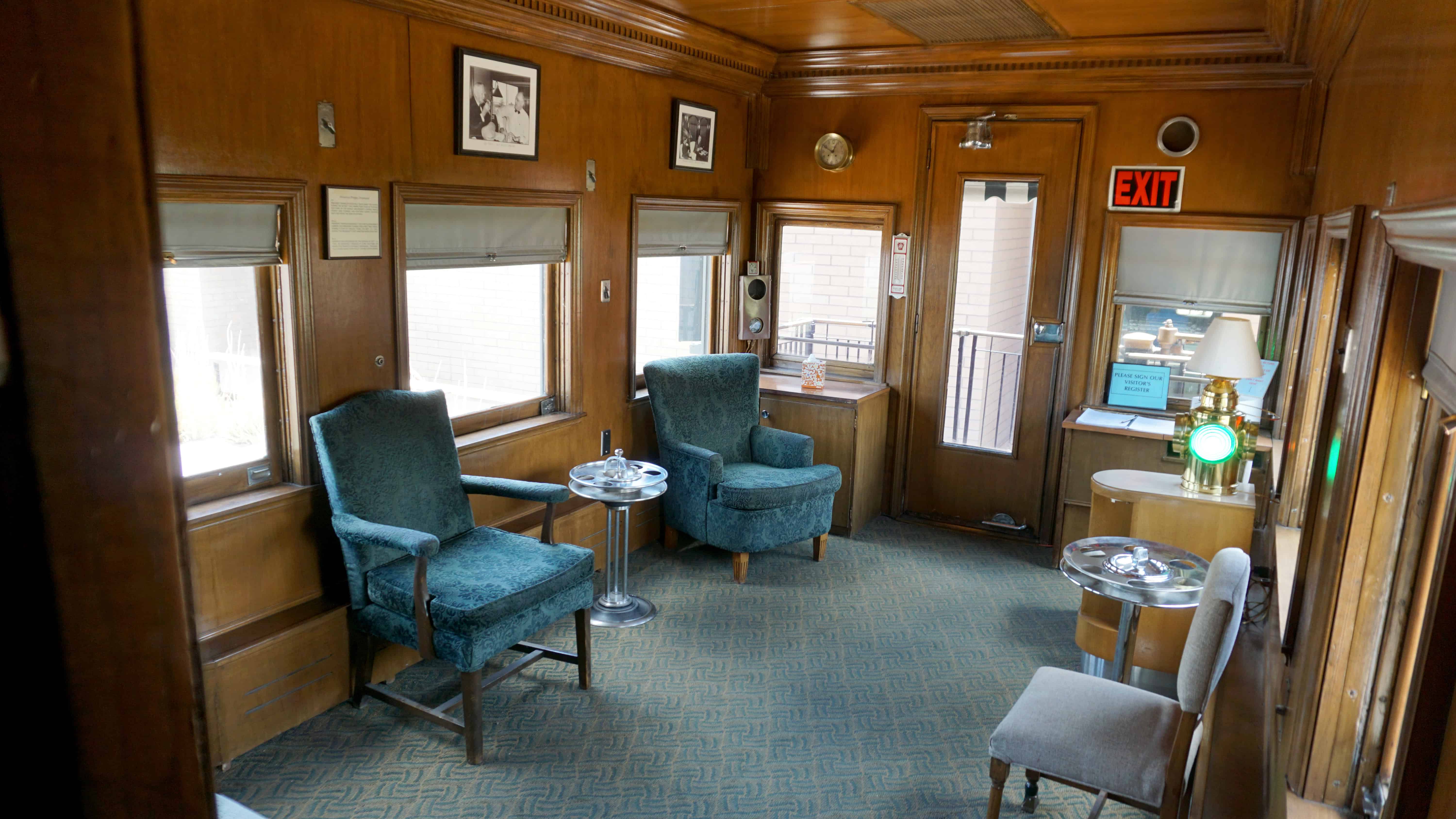 The car was used by Herbert Hoover for campaigning and then by Franklin Delano Roosevelt for his 1936 reelection campaign and then for many years as his official presidential train car known as U.S. One. After the U.S. entered the war and an identical Pullman car, the Ferdinand Magellan, was retrofitted for tighter security, FDR continued use of the Roald Amundsen and his Vice President, Harry Truman, used the armored car. However, for the funeral procession Truman allowed FDR’s widow, Eleanor, the use of his train car and rode in the Roald Amundsen. Then this already historic train car served Dwight D. Eisenhower on his whistle-stop tour across the country in 1952.