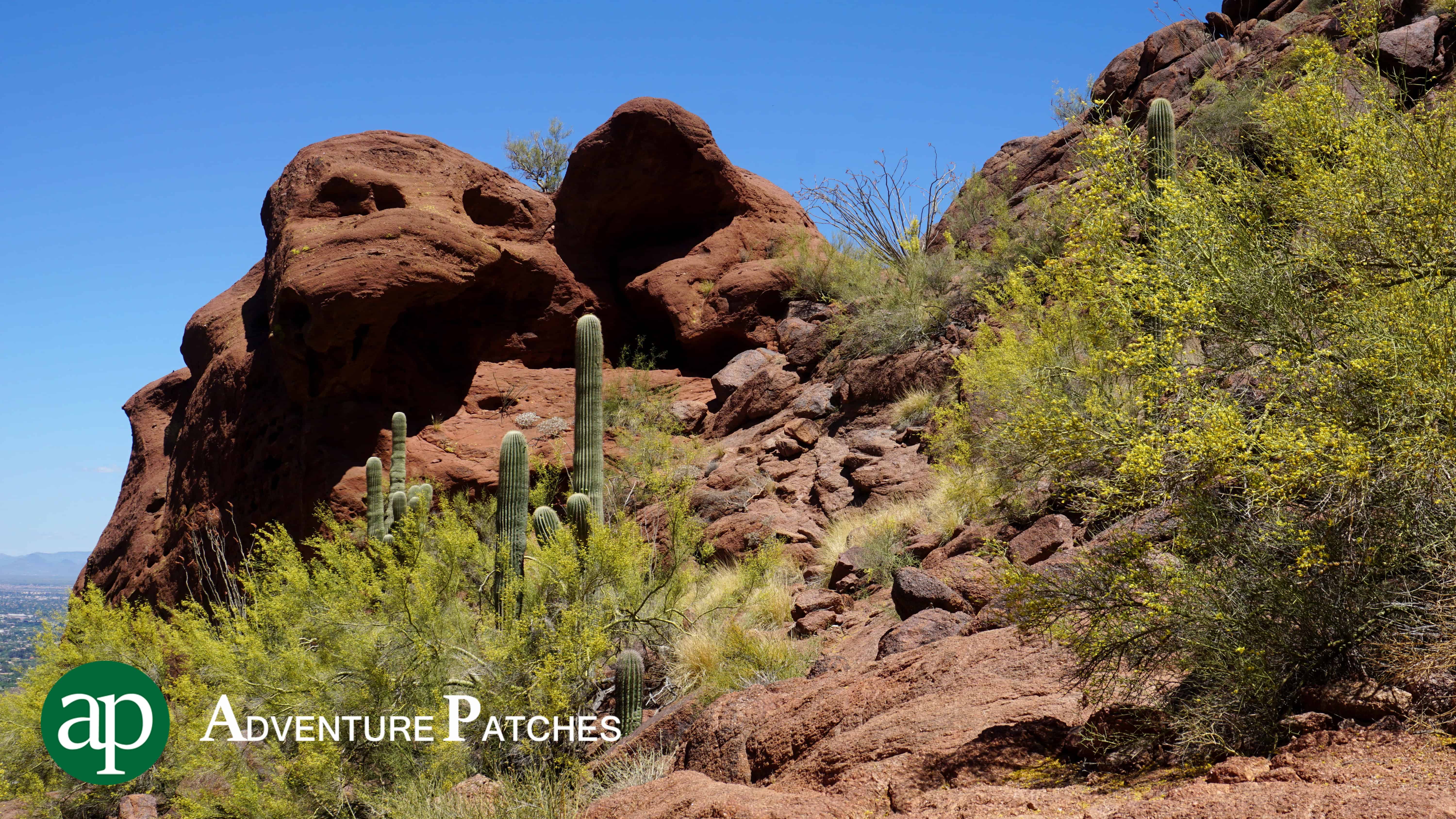 Echo Canyon Trail begins at a little parking lot in Paradise Valley near the head of the camel (northwest side of the mountain) off of McDonald Road. The parking lot is small, so carpool and get there early if you plan to park and hike. The mountain is extremely popular. We were just dropped off and didn’t have to find parking.