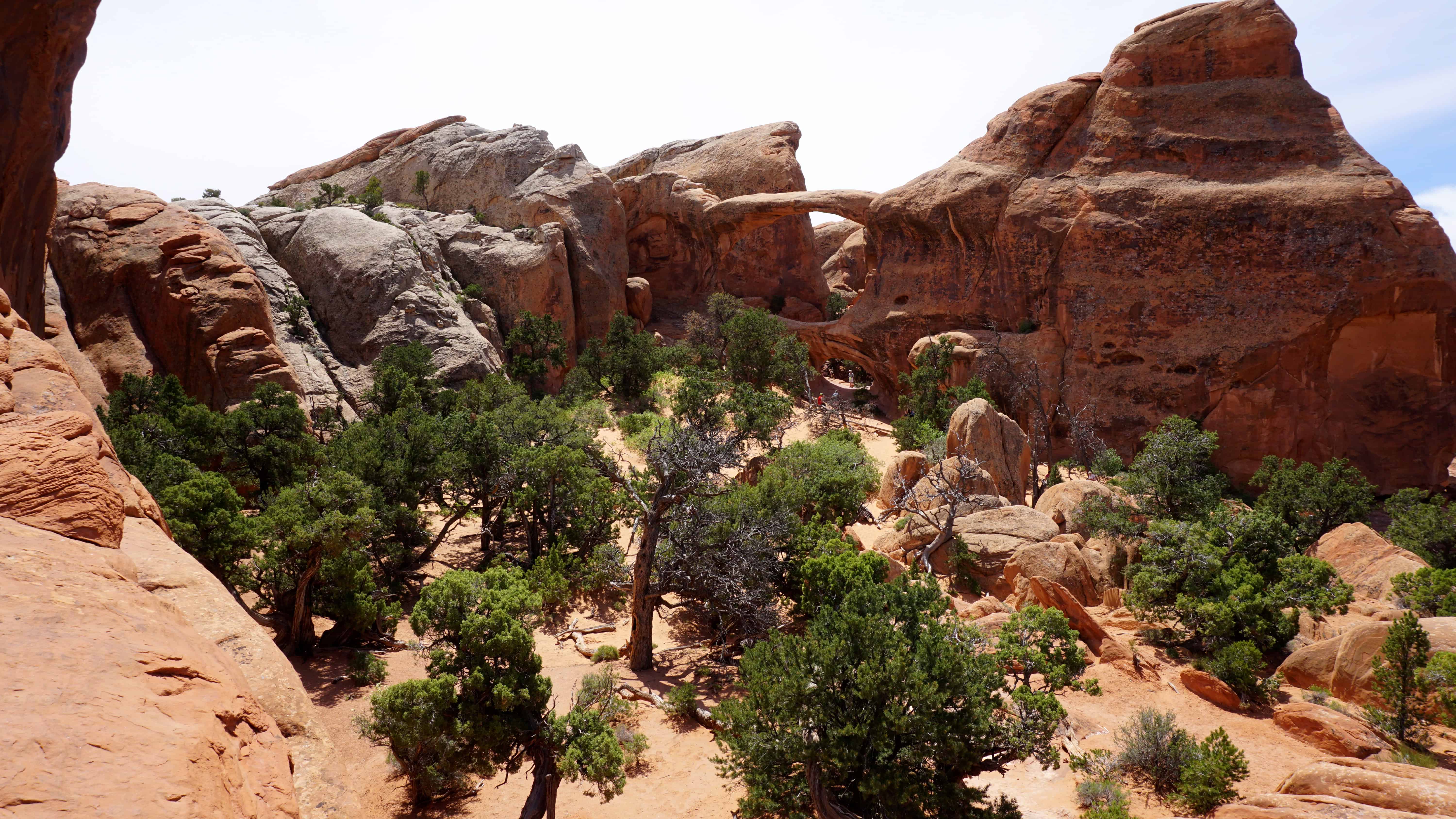 There are also some short spur trails along this route too. They lead to Navajo Arch and Partition Arch—both spectacular structures. Partition is two openings side-by-side that frame the expanses of Arches National Park beautifully. By this point my tootsies were aching. It was only a short distance more back to the trailhead.