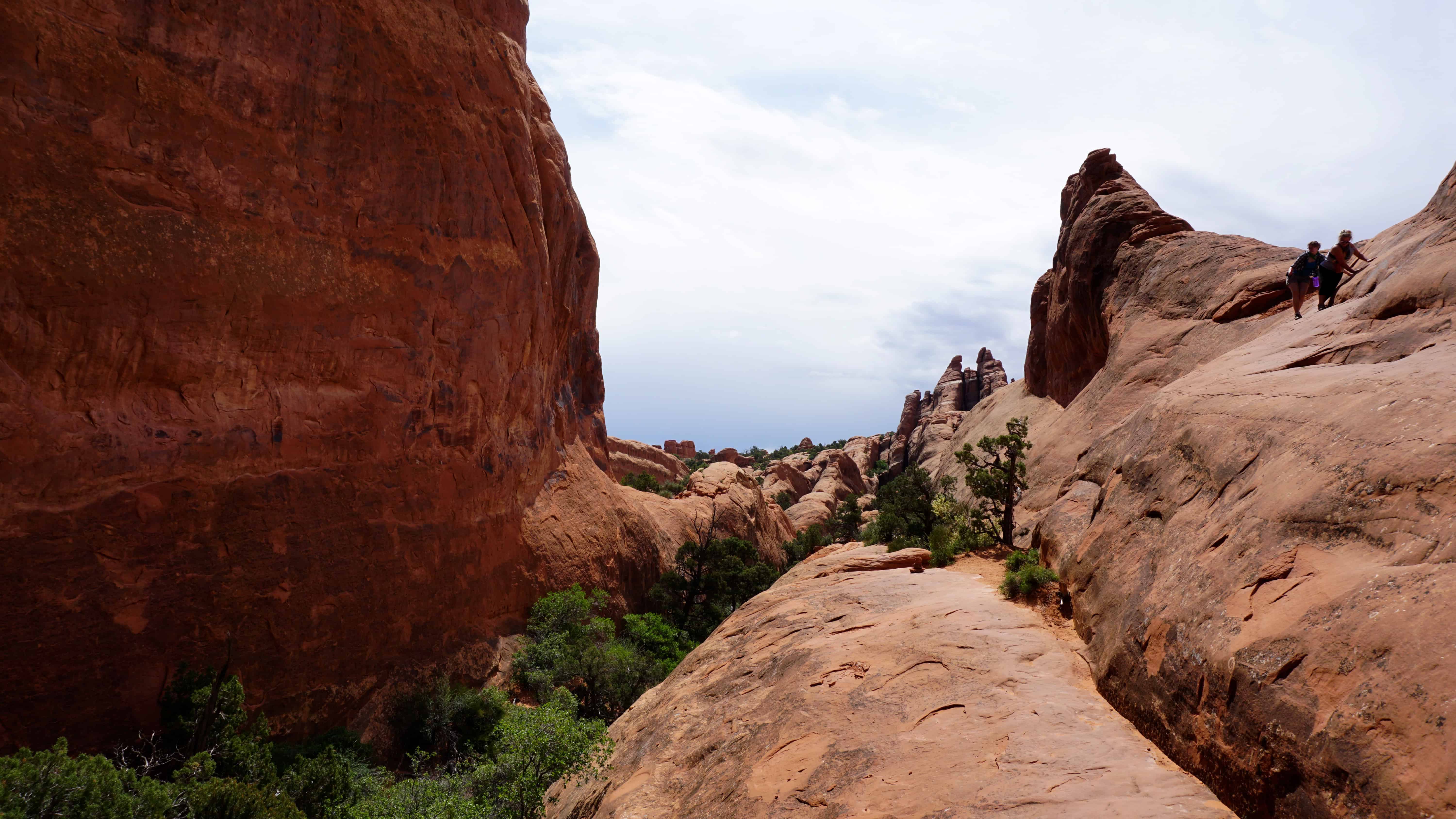The trail is broken into three segments: the Landscape Arch walk, the Double O Arch Trail, and the Primitive Trail.