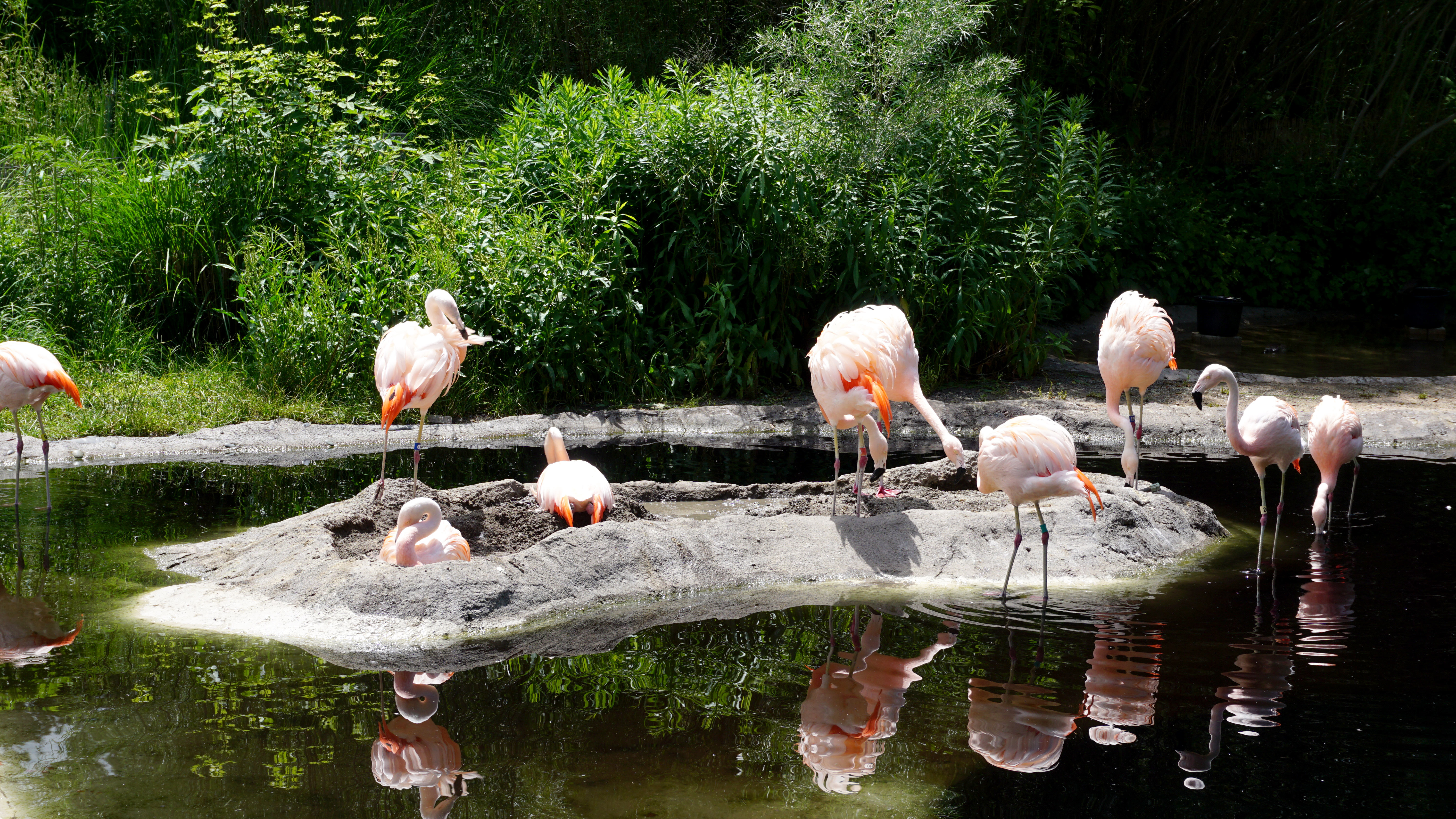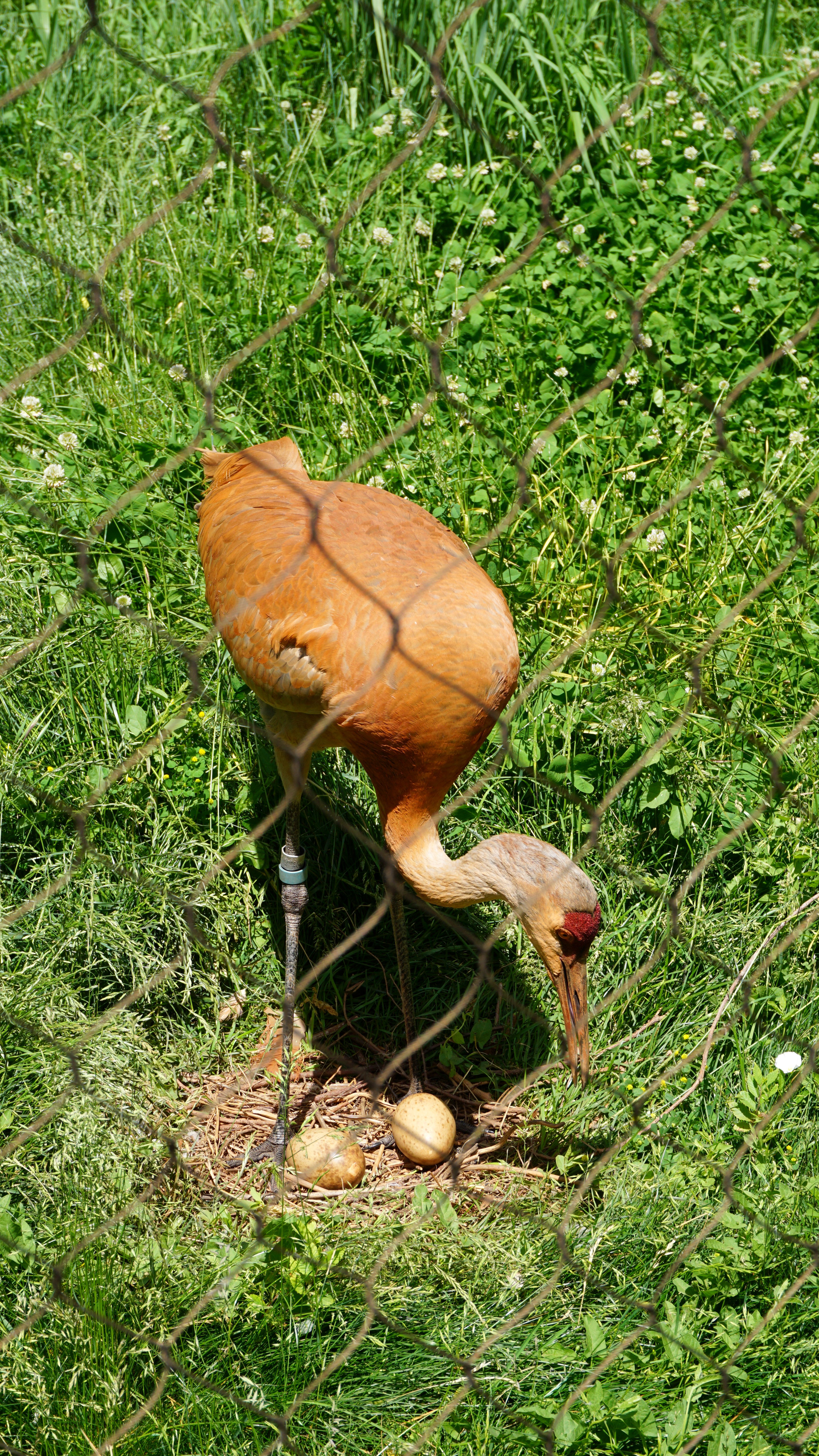 Roaming freely through the park are peacocks and hens as well as guinea fowl. Other highlights include the rescued birds of prey, the collection of owls and the Sandhill Cranes. Andy the condor is of course a special treat. Going when we went (early June) seemed to be a really good time as many birds were nesting. The cranes had eggs, the flamingos were on mud nests and parakeets were making nests in their enclosure.