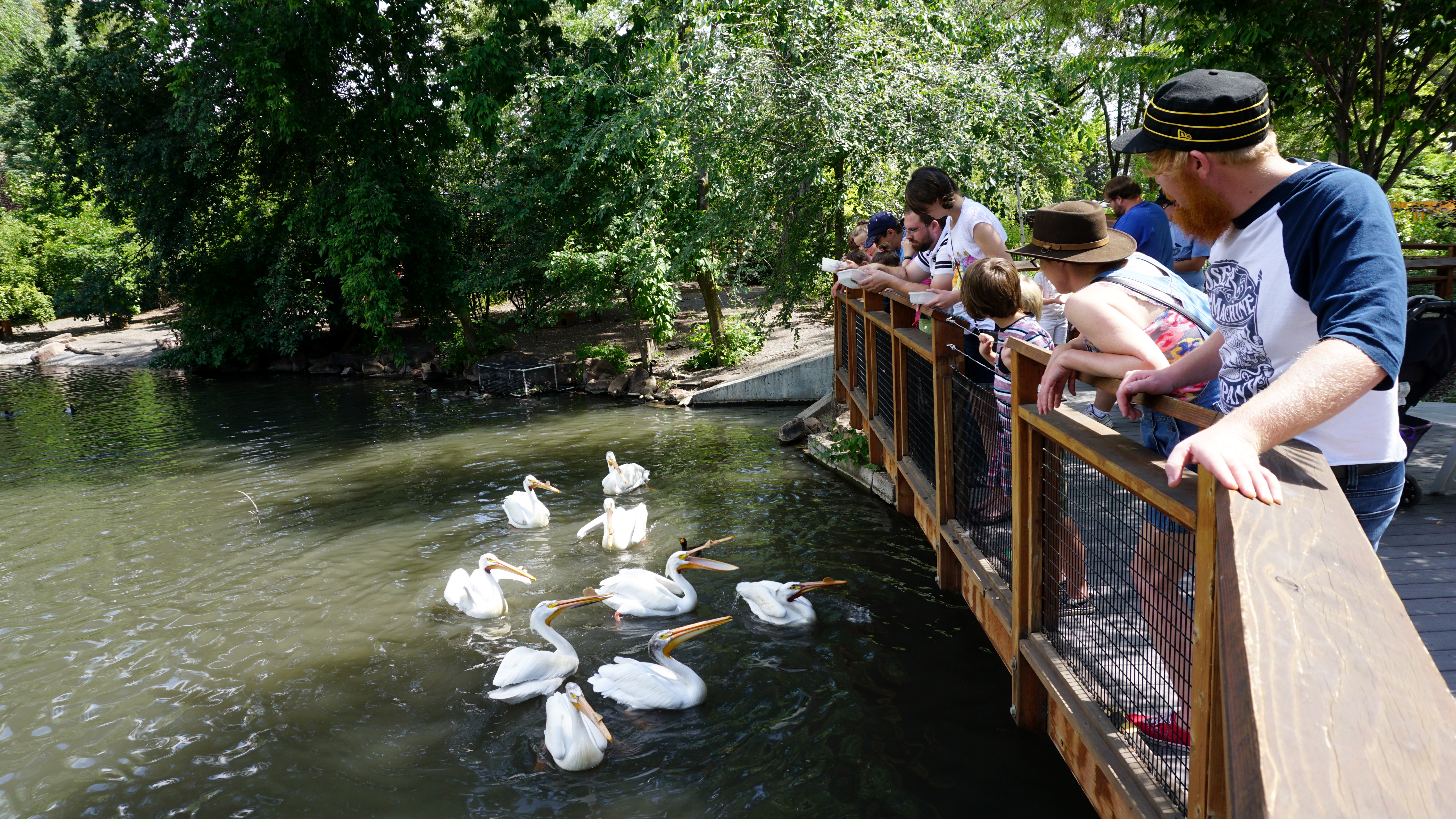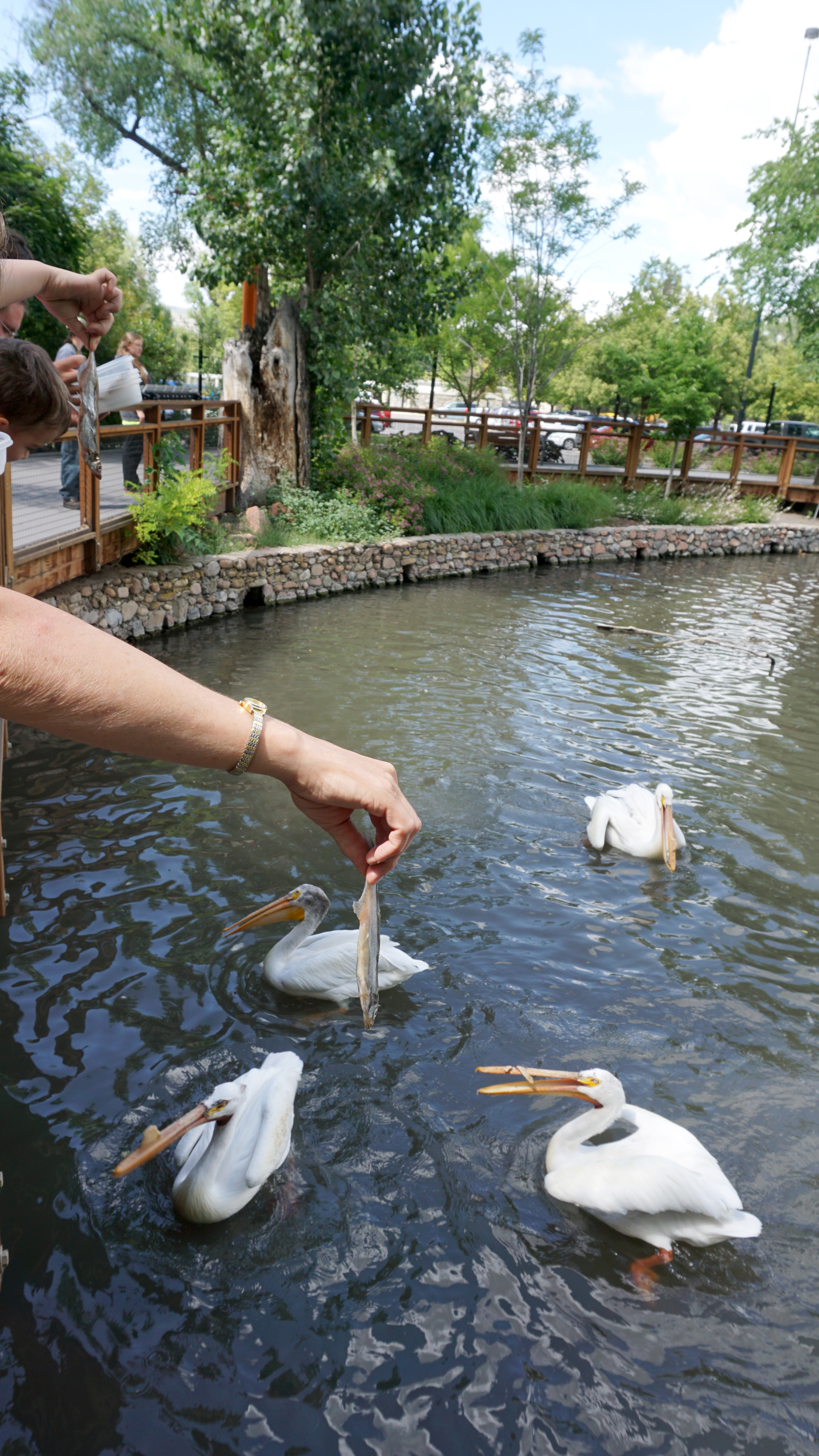 In addition to seeing the birds and a couple of shows in the theater space, there are other experiences to help visitors interact and better appreciate these feathered Salt Lake residents. While visiting, we watched a show in the amphitheater about eggs that could be a little more interesting and use more birds. We also fed Sun Conures and pelicans.