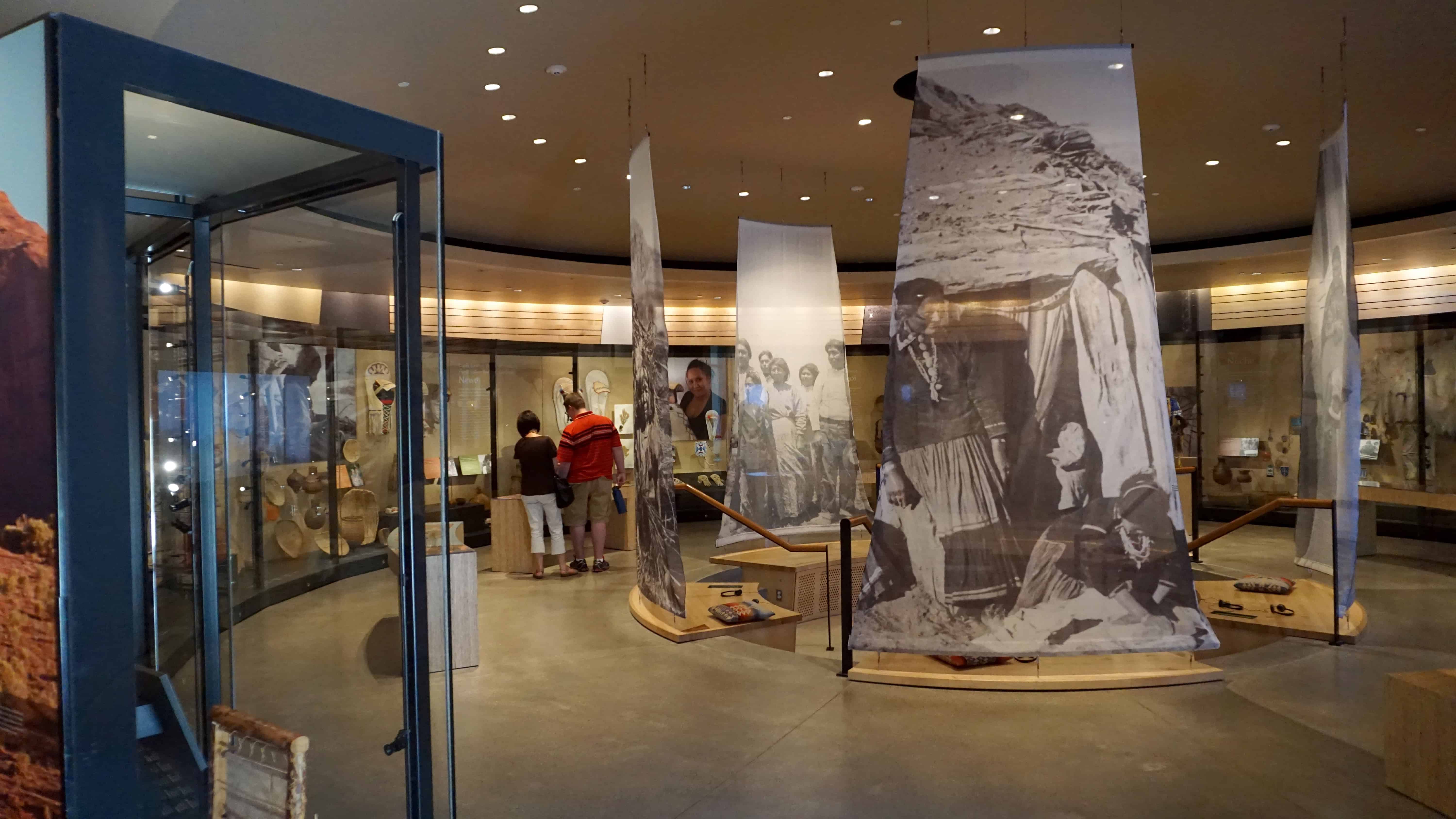 After paying admission guests ascend into the Canyon, a large gathering space and central court of the museum that truly gives the feeling of being in a lovely red rock canyon common to southern Utah without looking like an actual canyon. In this space you’ll find a café, entrance kiosks, some interactive displays, gift shop and the Collections Wall with more than 500 objects from the museum’s collection artfully displayed to give an introduction to what the museum will share.