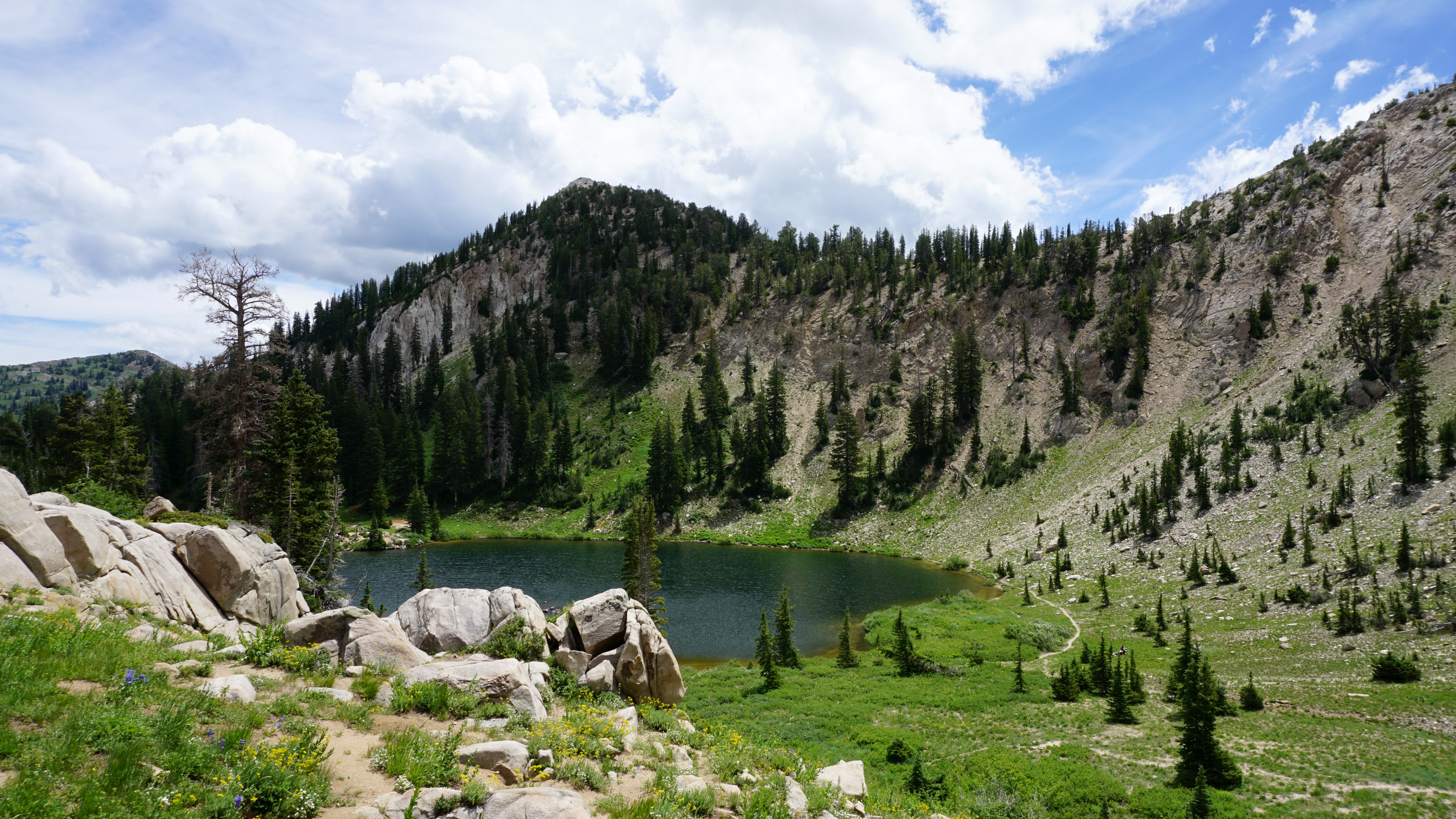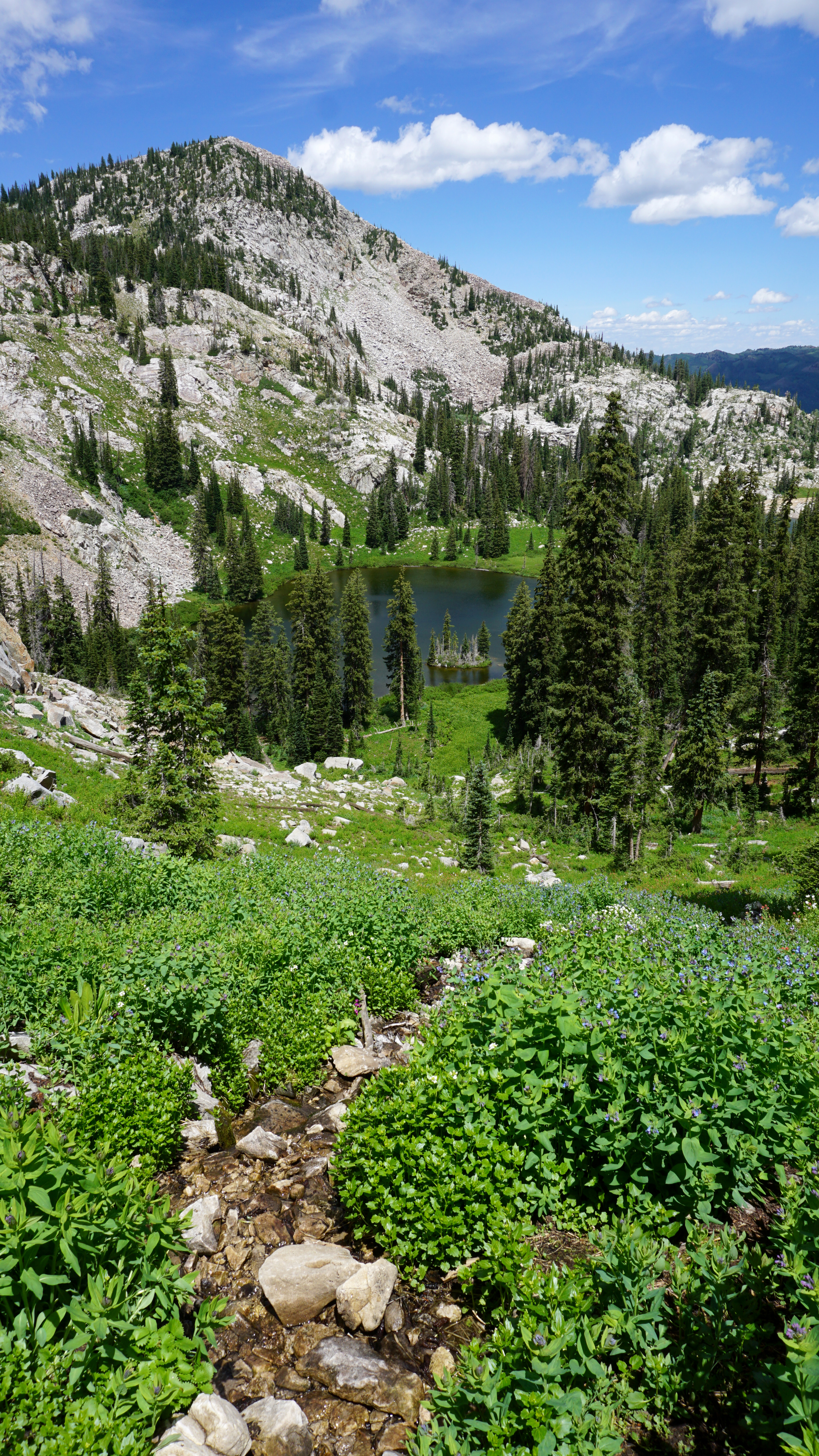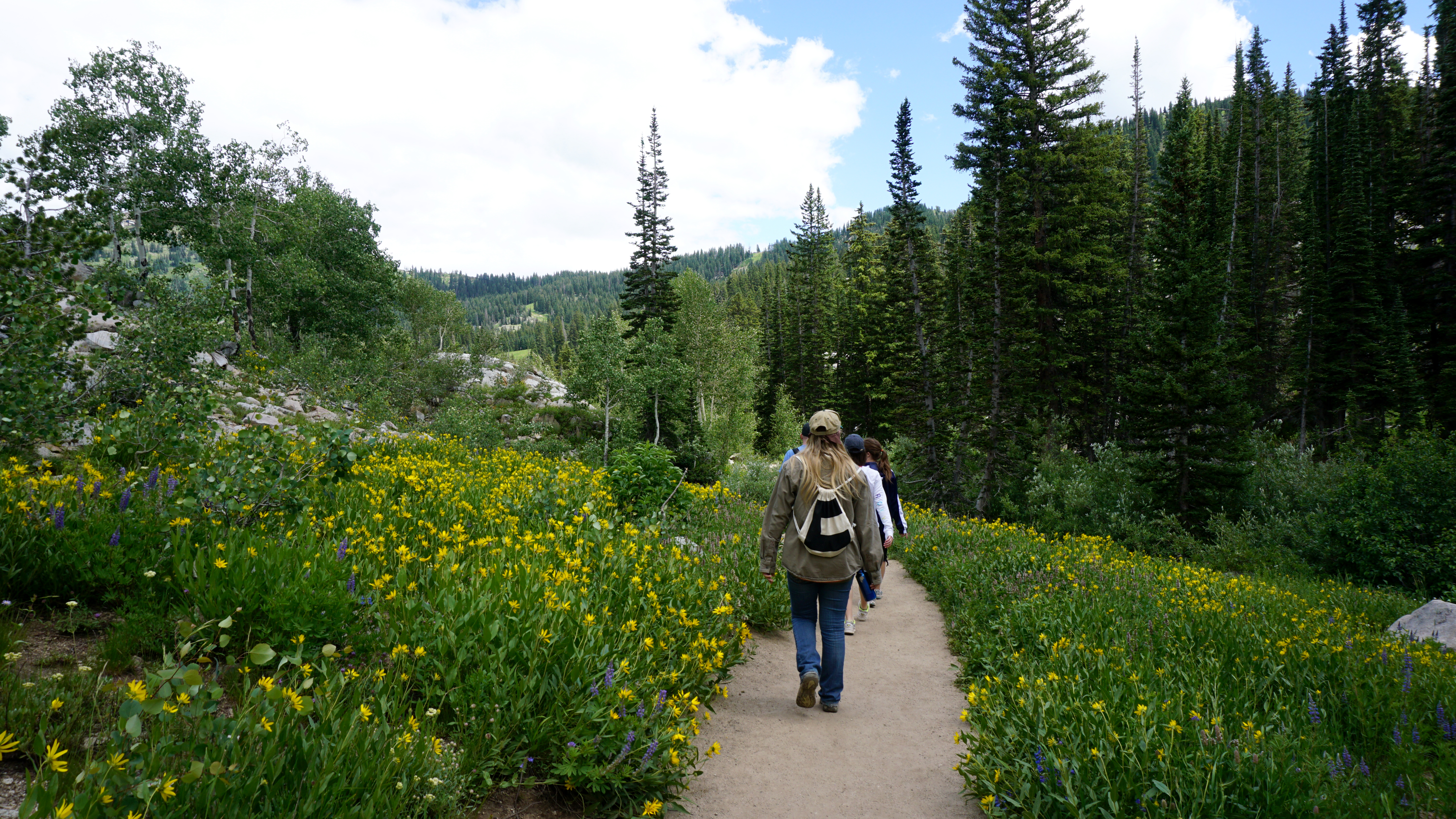 One of these trails begins right at the bottom of Brighton Ski Resort’s slopes. The Brighton Lakes Trail leads to three alpine lakes: Mary, Catherine, and Martha. Mary is a reservoir; the other two are natural and drain into one another and then Mary.