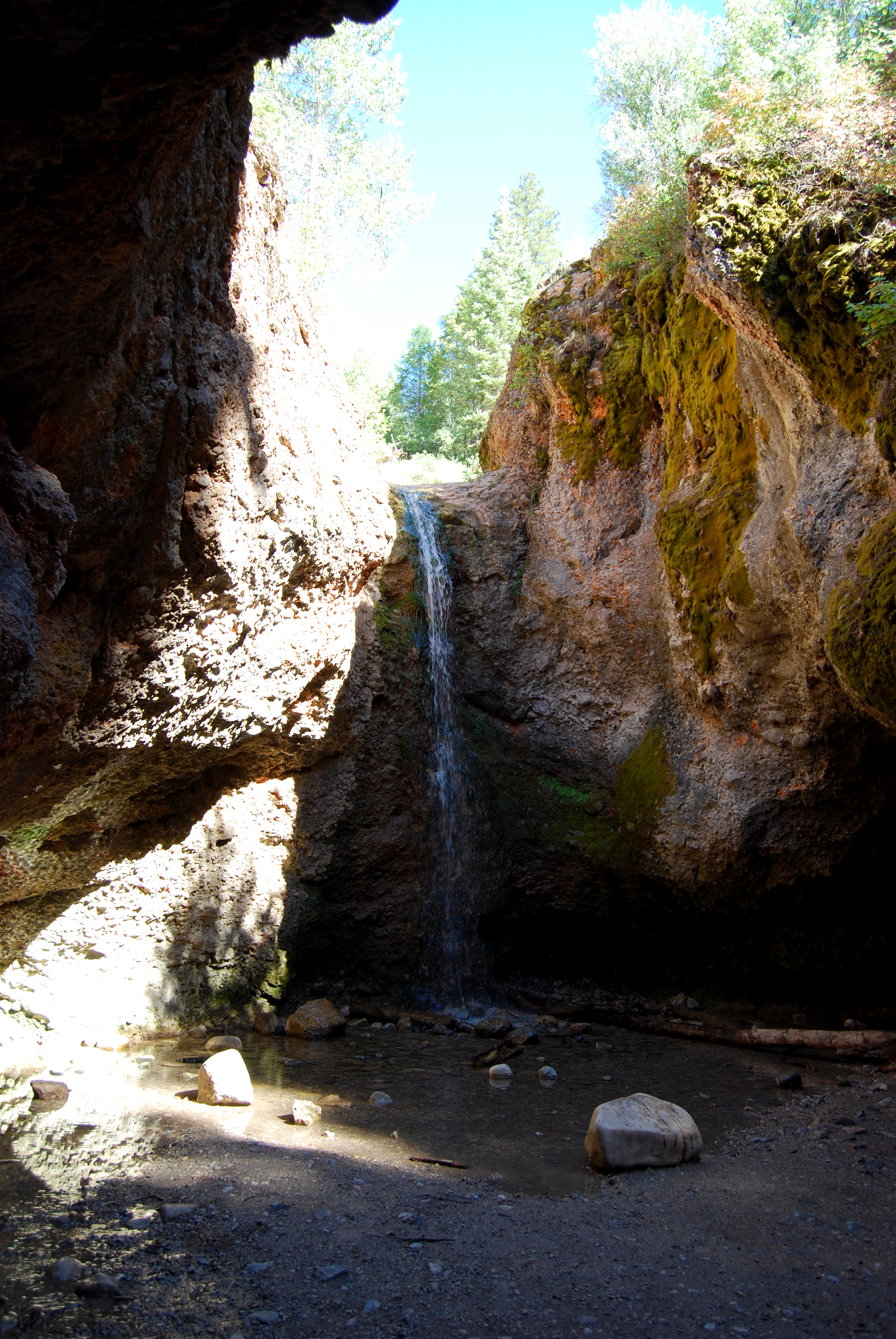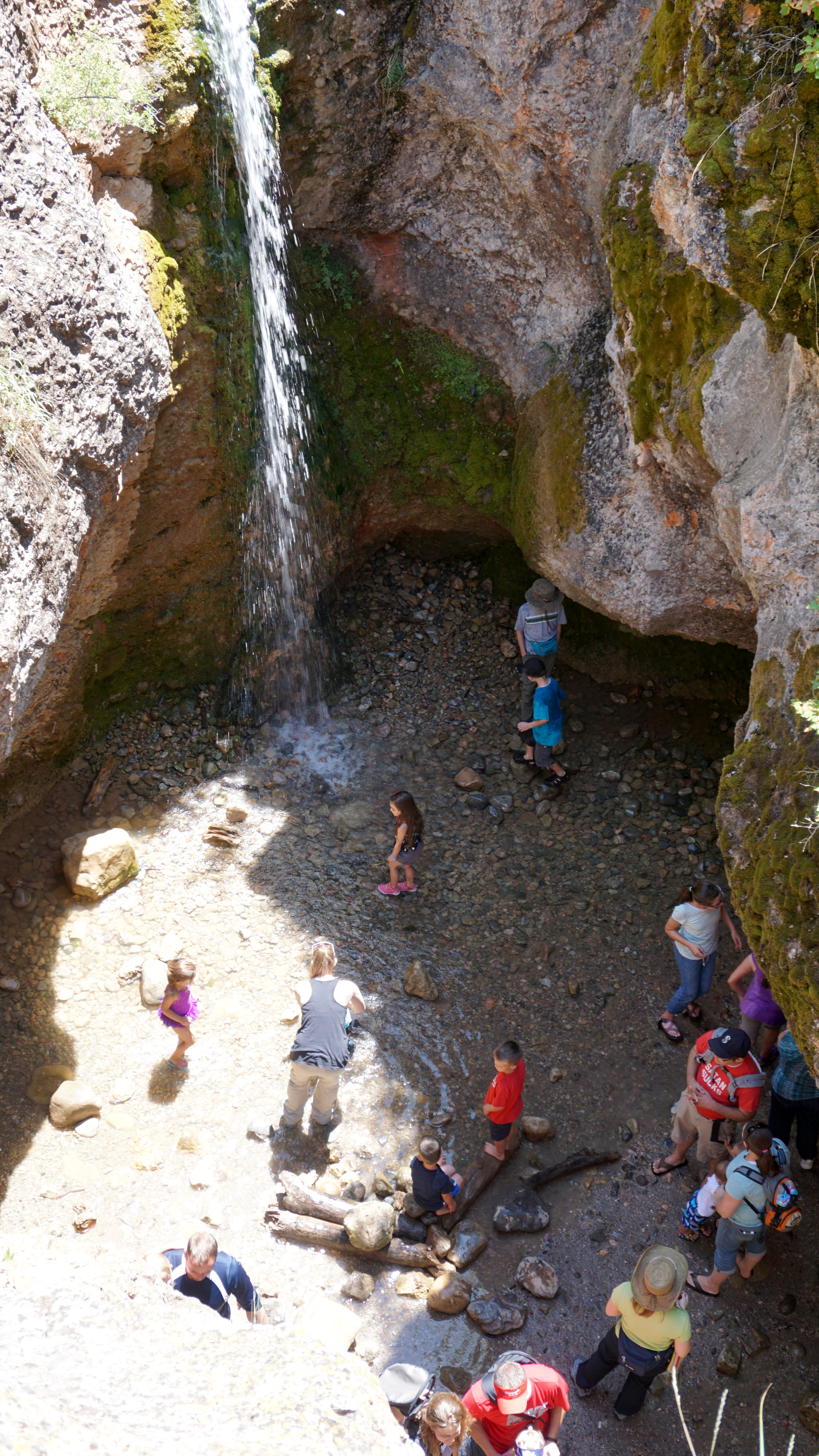 If you’re a little more adventurous, you can climb a steep trail up and around the grotto to look down from above. Word of warning though, the rocks are very slippery just above the falls.