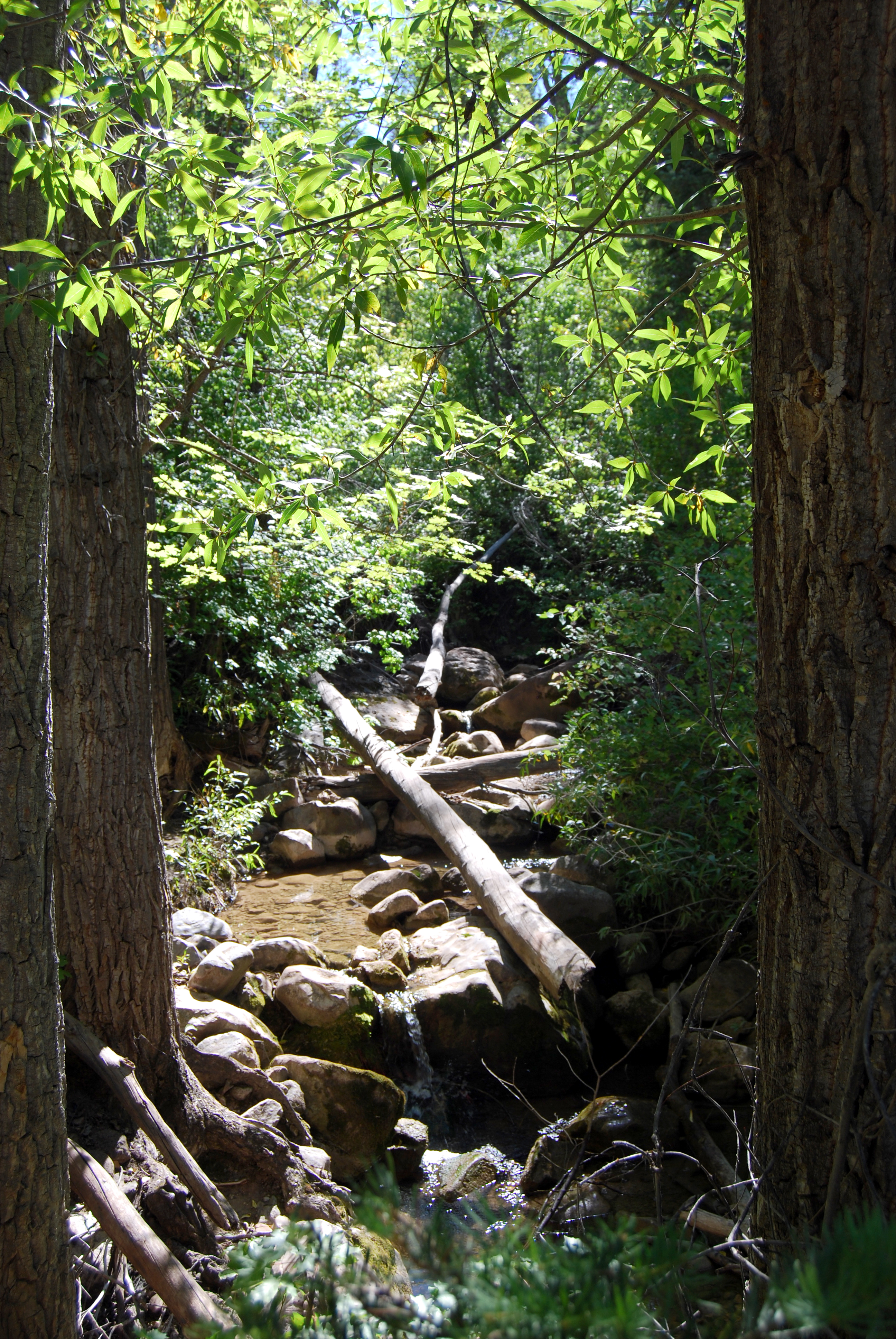 The trailhead and parking lot are found right where the two roads entering the canyon join. There was no sign marking the entrance, so look for the open gates on the south side of the fork.