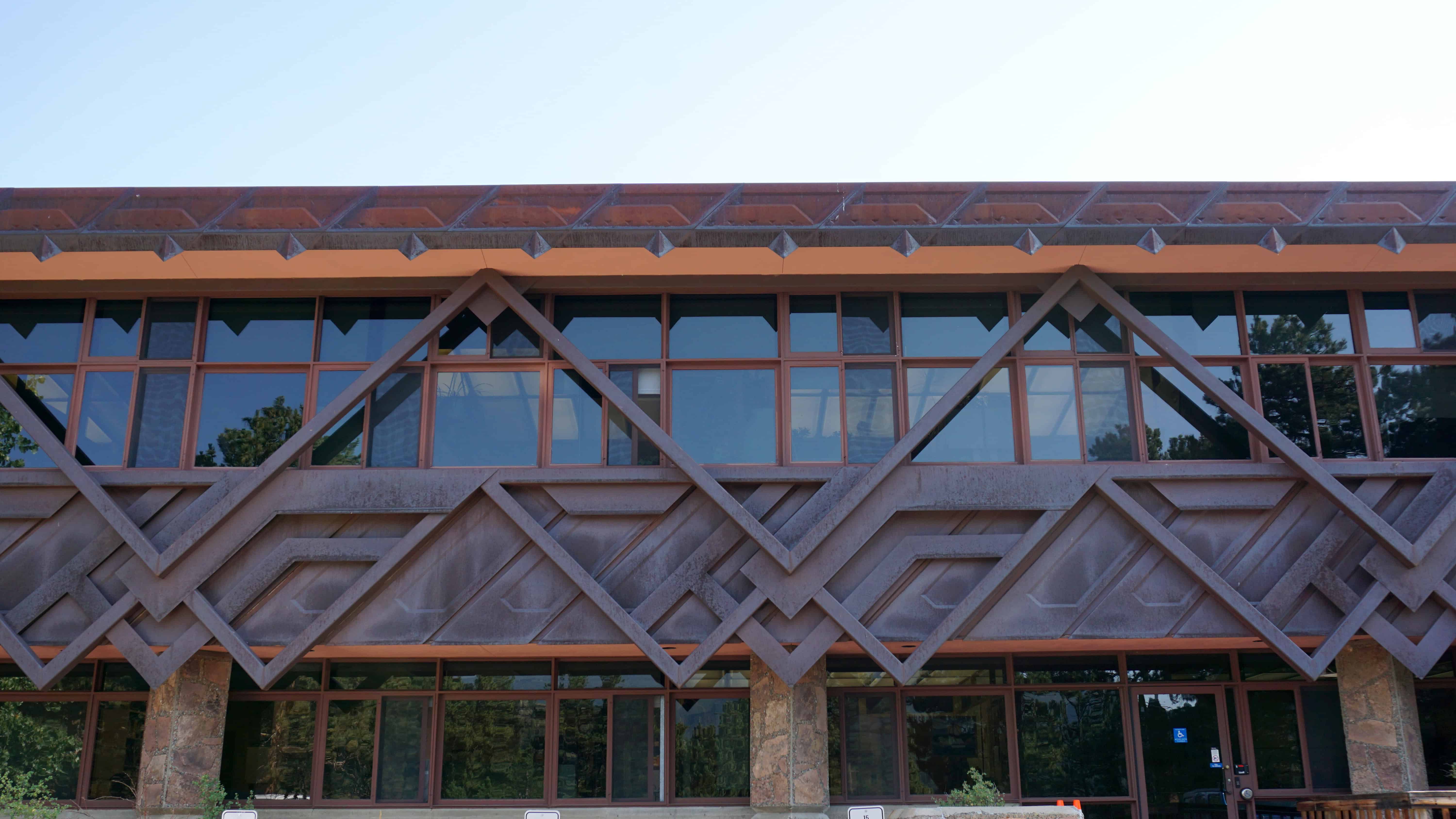 On my way out, I stopped at the Beaver Meadows Visitor Center to get a patch and was treated to another surprise—a National Historic Landmark building designed by Frank Lloyd Wright’s apprentices at Taliesin West. I saw the building and knew it was somehow connected to the great architect.