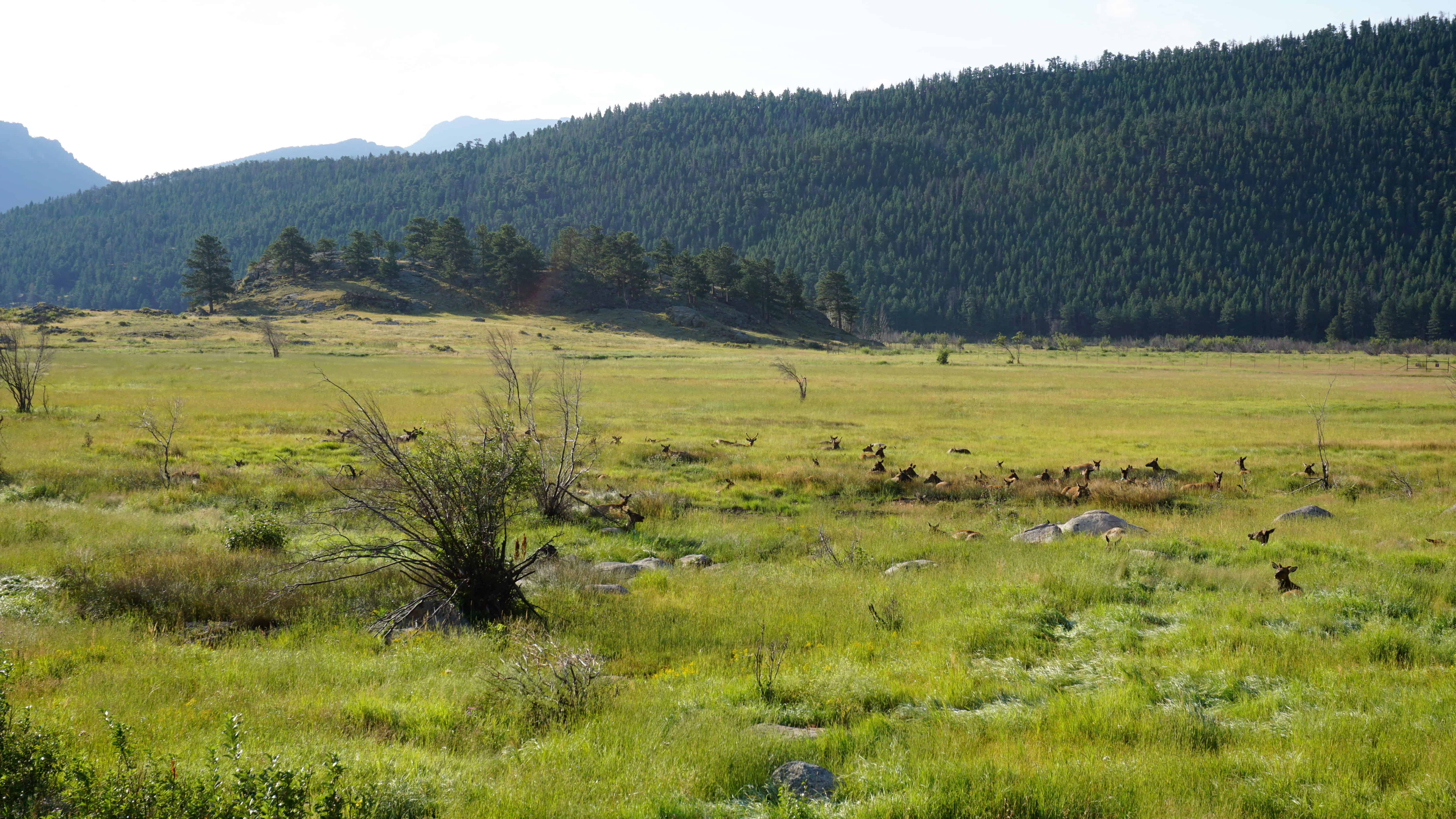 From there it was all literally downhill. However, the experience was just as amazing with views of alpine lakes and snow packs at the Forest Canyon Overlook and impressive panoramic vistas at Rainbow Curve. Surprisingly, the east side of the park is more arid than the west side providing a different but still beautiful landscape to discover with lush meadows surrounded by forests climbing up towering mountains. After a night at Moraine Park Campground, I drove a little way down into the meadow and was treated to a resting herd of elk.