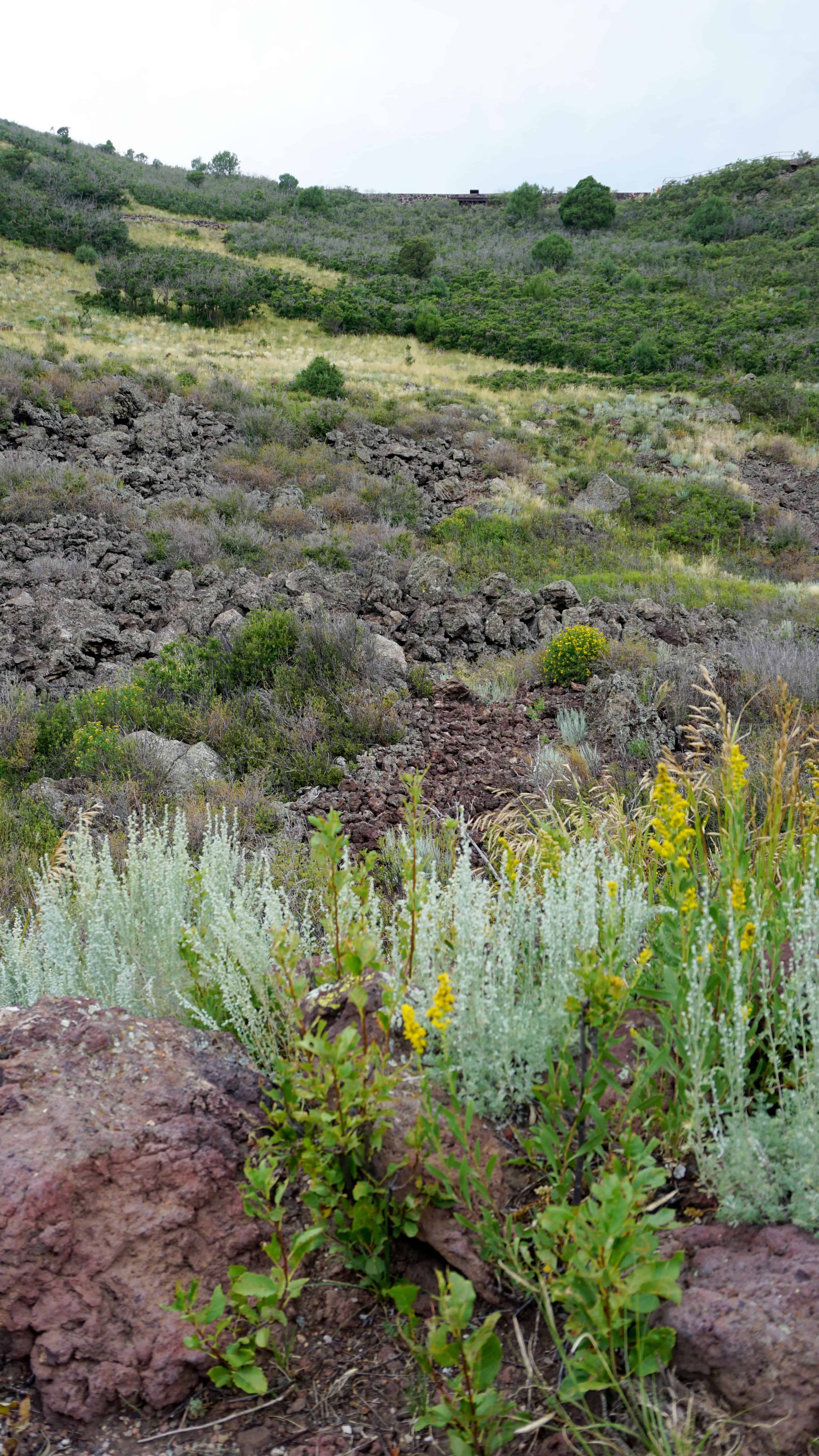 Today, the monument invites visitors to get a different look at an extinct volcano as a road was constructed spiraling up the mountain where visitors can then hike around the crater’s rim or down into it. I did both as the trails are not very long.