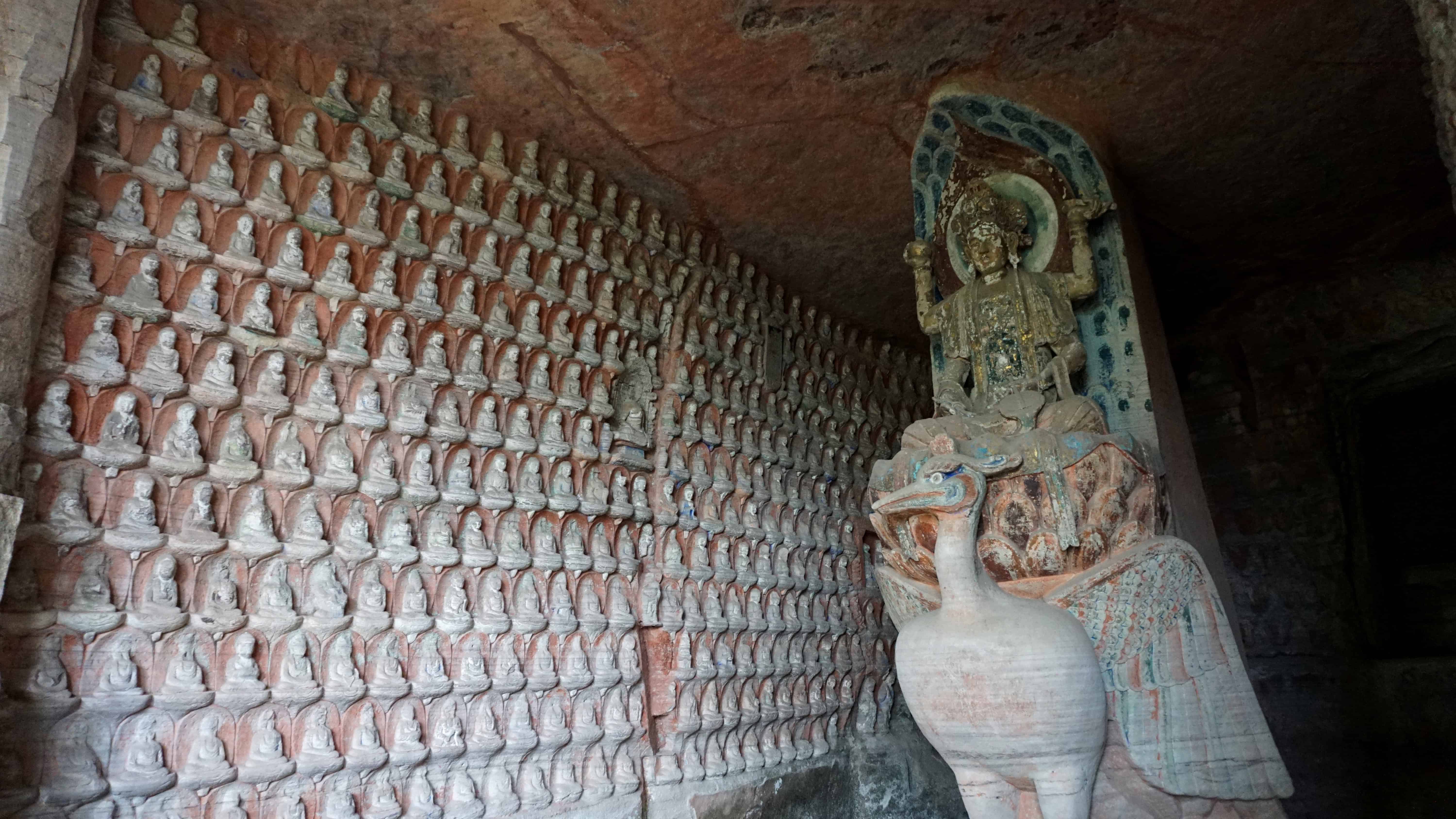 On the opposite side of the small city is North Mountain or Beishan. Its collection of ancient rock art is much larger than Nanshan’s and is almost exclusively Buddhist as must grottoes are. However, unlike a lot of grottoes I’ve seen this one has hundreds of small caves that are intricately carved on top of each other. It sounds a lot like the Longmen Grottoes in Luoyang, but it is very different. Those at Beishan feel more intimate and detailed.