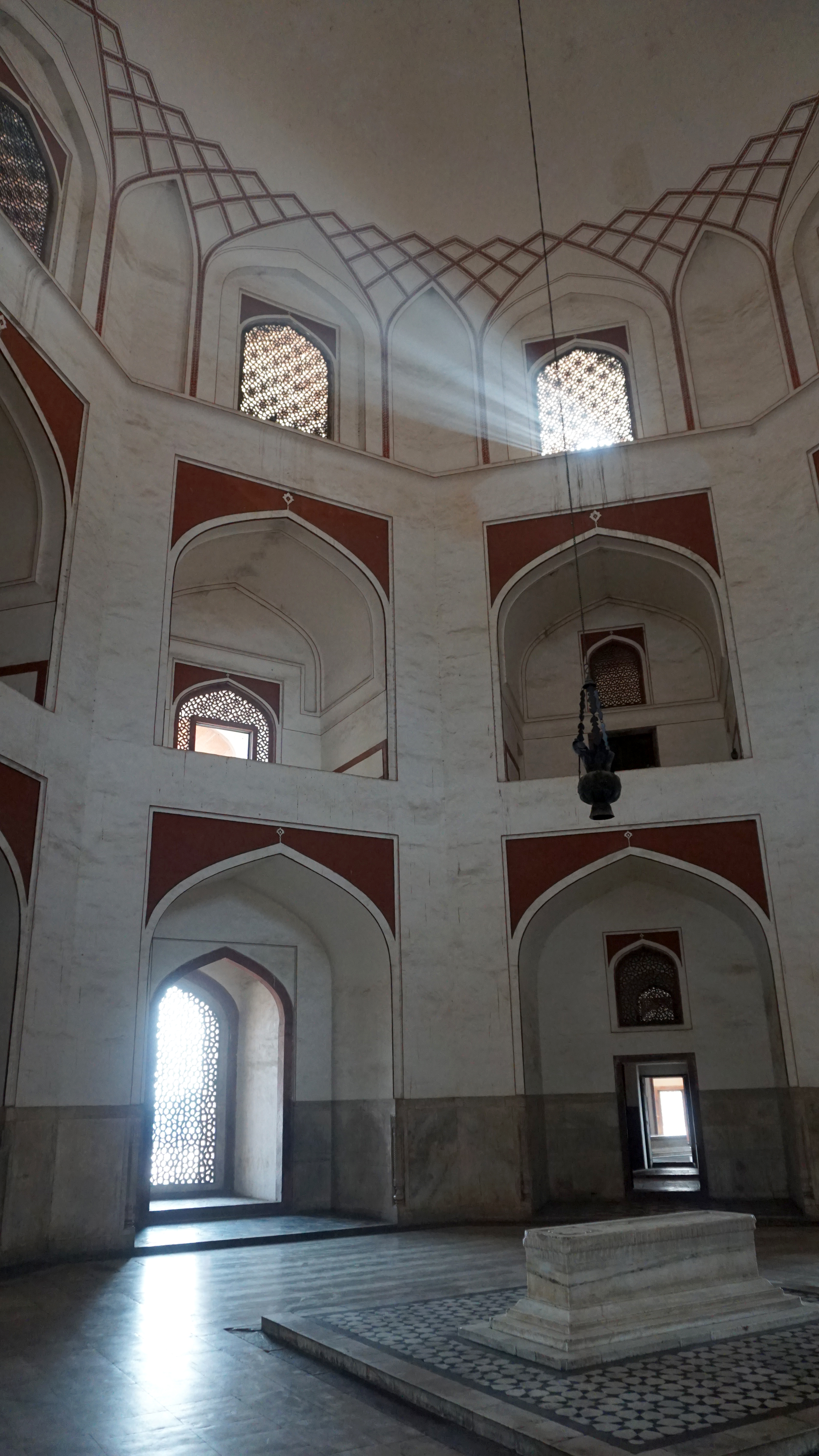 Because of the haze and the morning hours of our visit, the light filtered through the lattice in beams laying out the carved pattern not just on the floor in shadows but in the air as well. It was a peaceful place with few visitors when we were there.