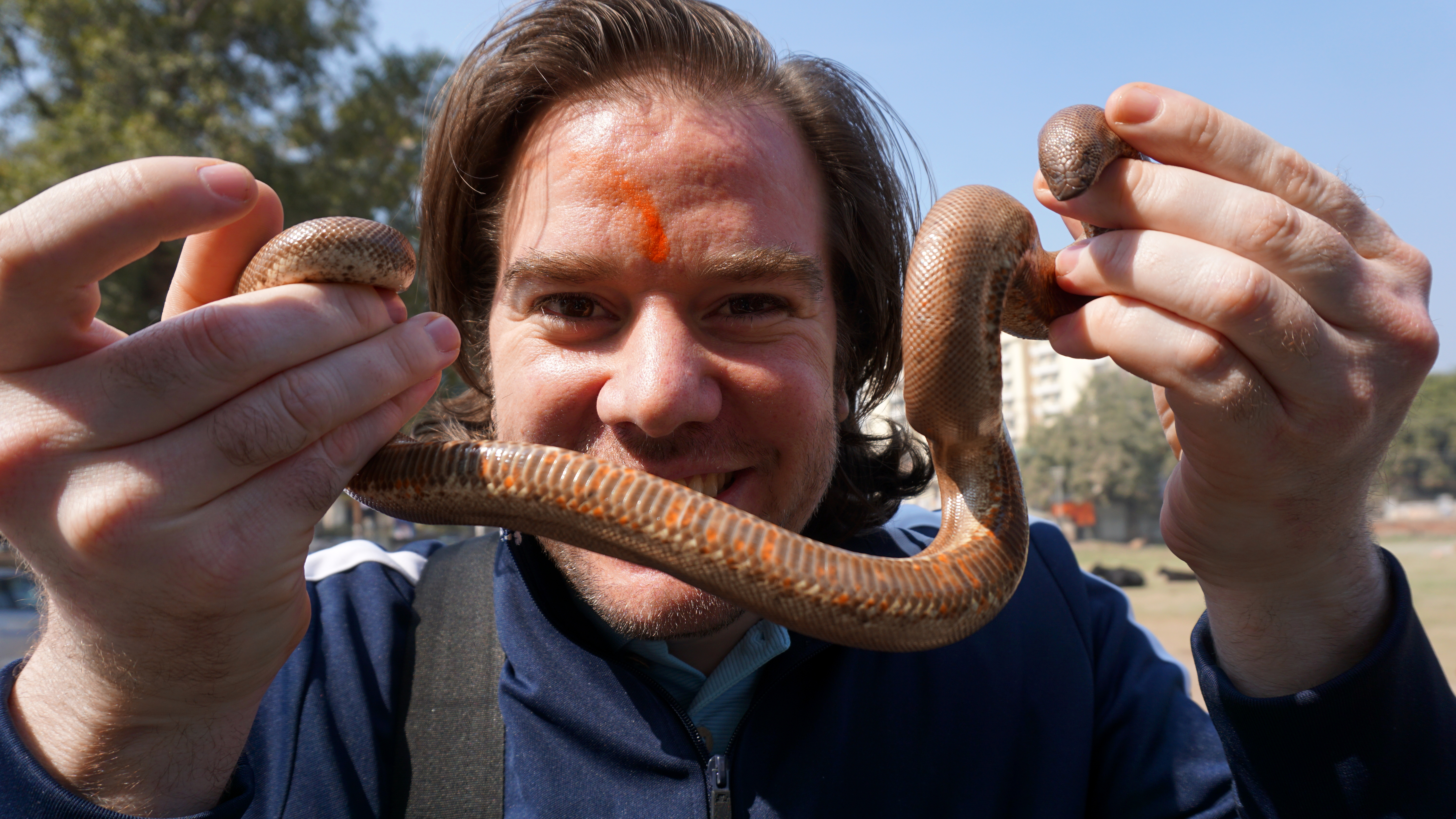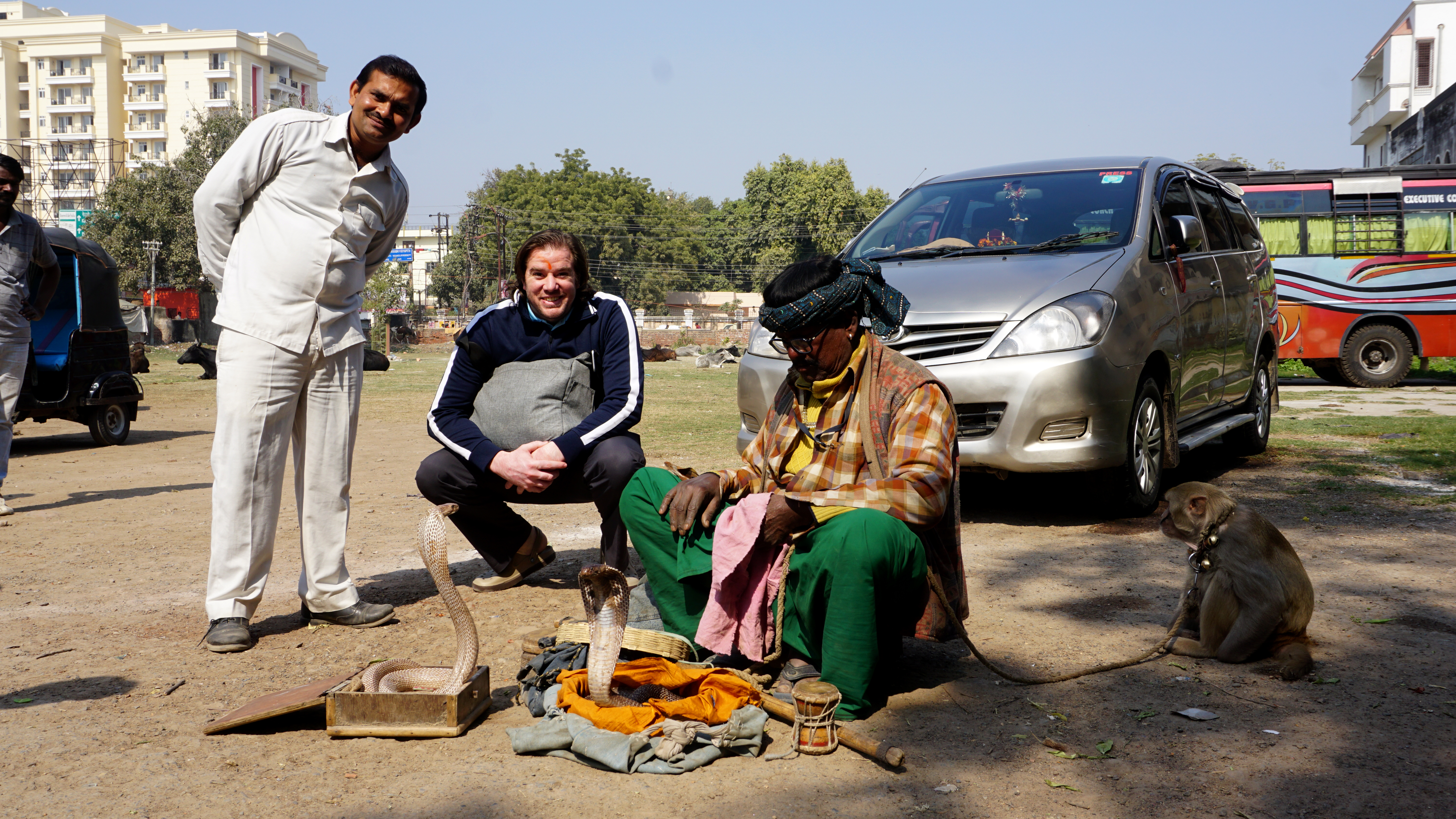 It only takes a few minutes to visit, and you might see our friend, the snake charmer, in the parking area. I didn’t really want to pay to see the snakes or watch a monkey dance since I don’t approve of how they treat the animals (most cobras are defanged and will die from that if used like this). But, Aaron was caught up in the culture of it all, so we stopped for some pics.