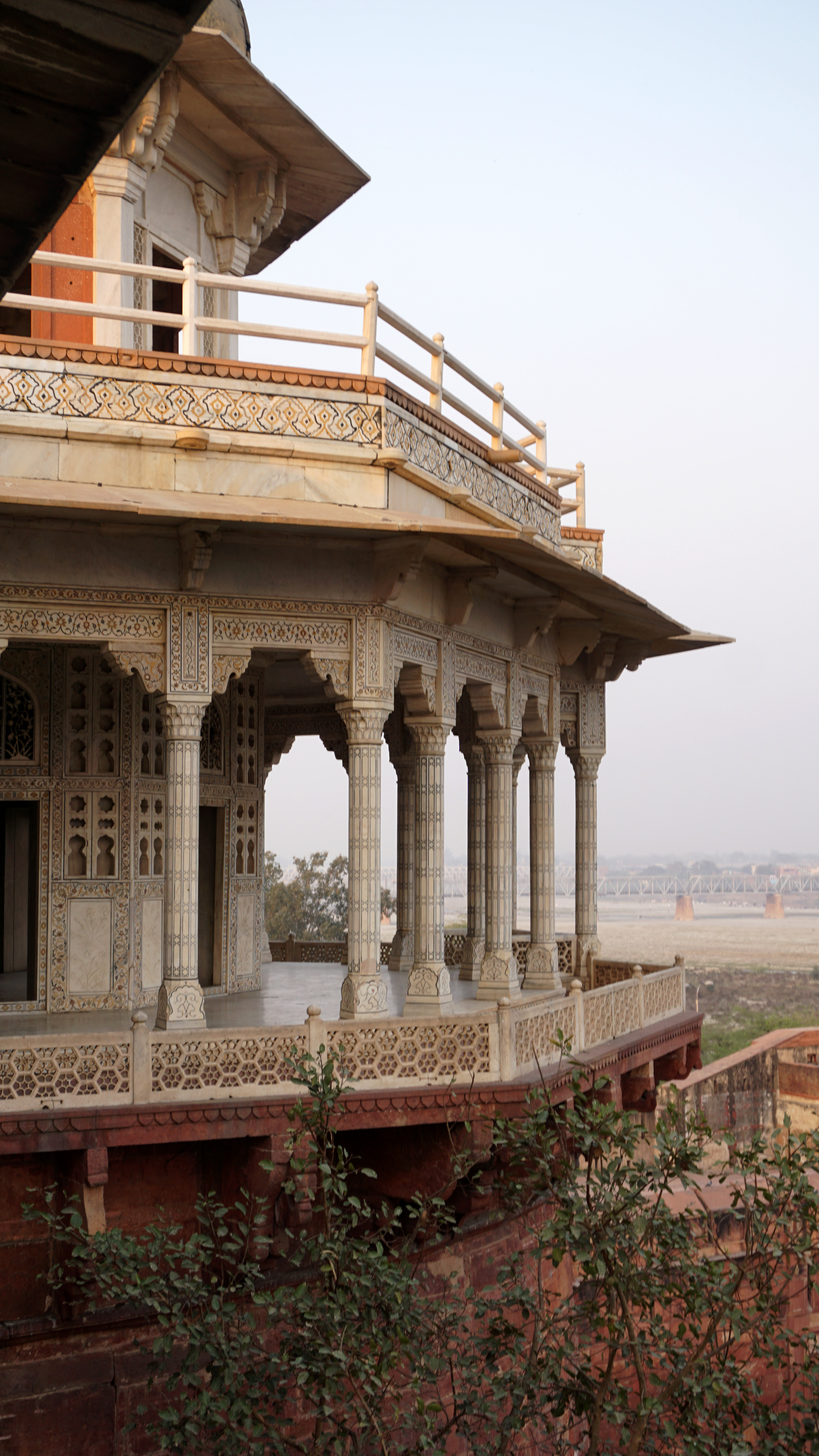 The Agra Fort was occupied by the Sultan of Delhi starting in the 1400s. A hundred years later, Akbar the Great built the red sandstone, Mughal-style fort was built at the site of an existing four-hundred-year-old brick fort. Over the next few hundred years, as Agra served as a second capital, the fort was added to and altered for various monarchs and their courts including harems.