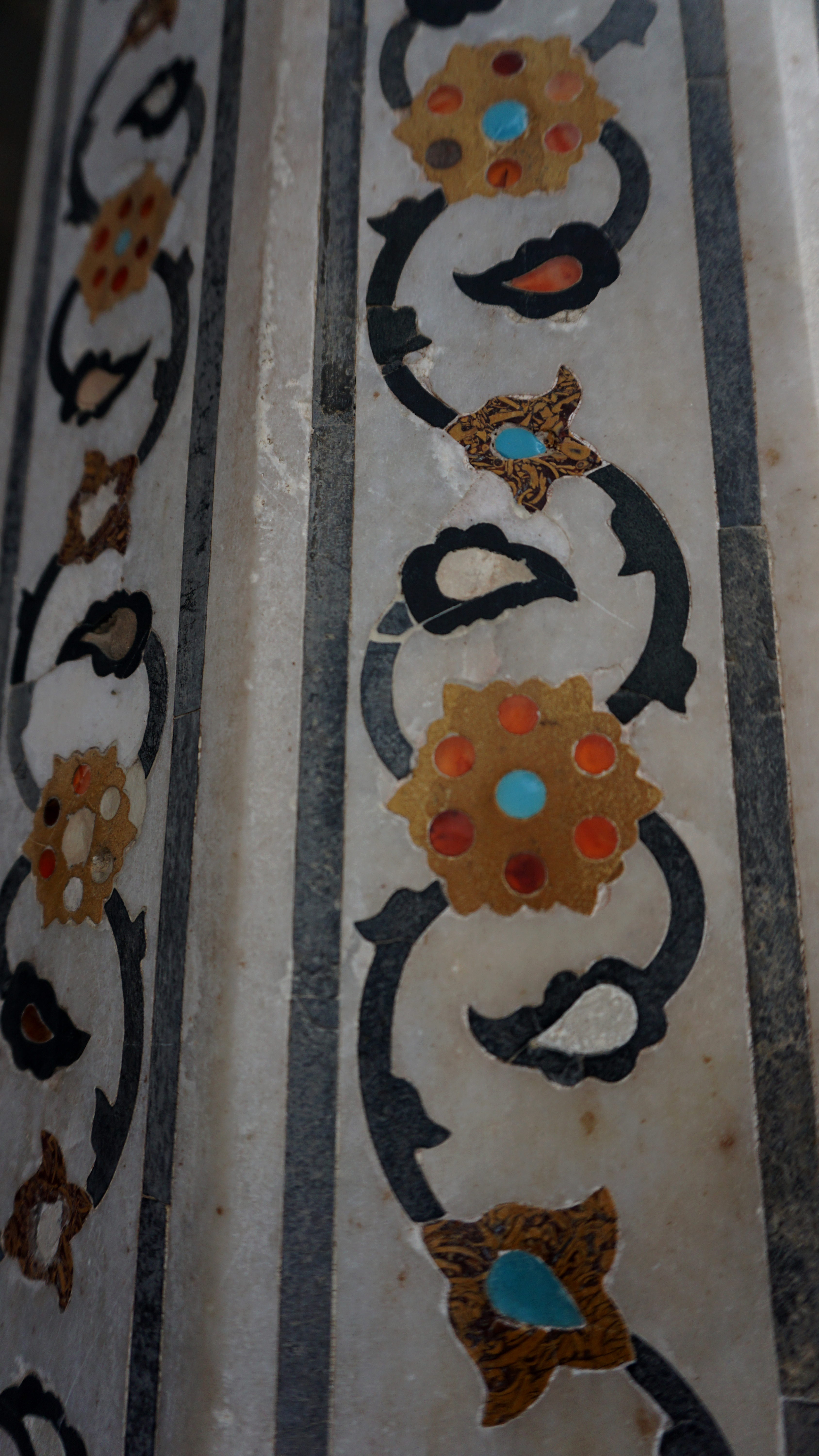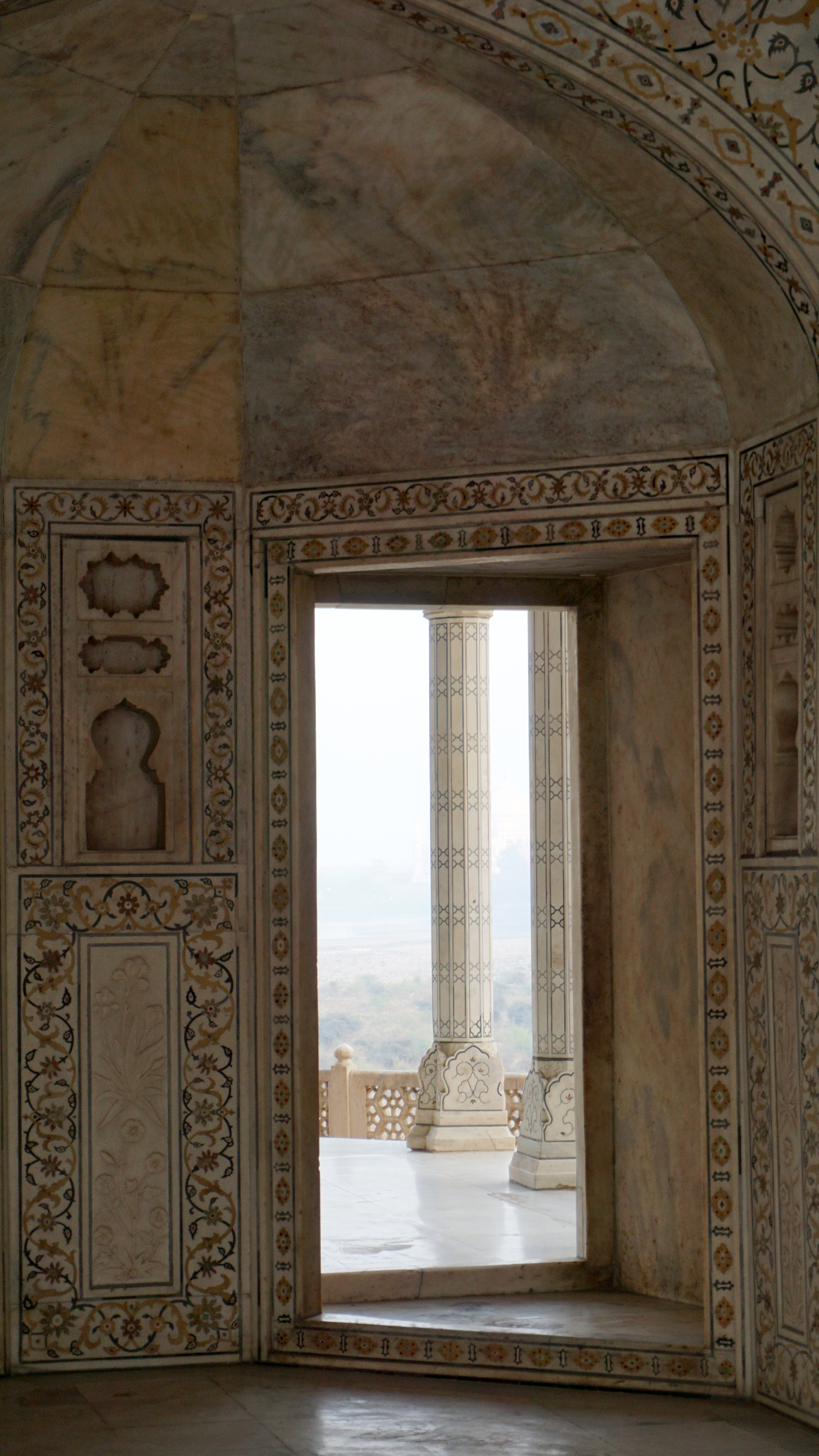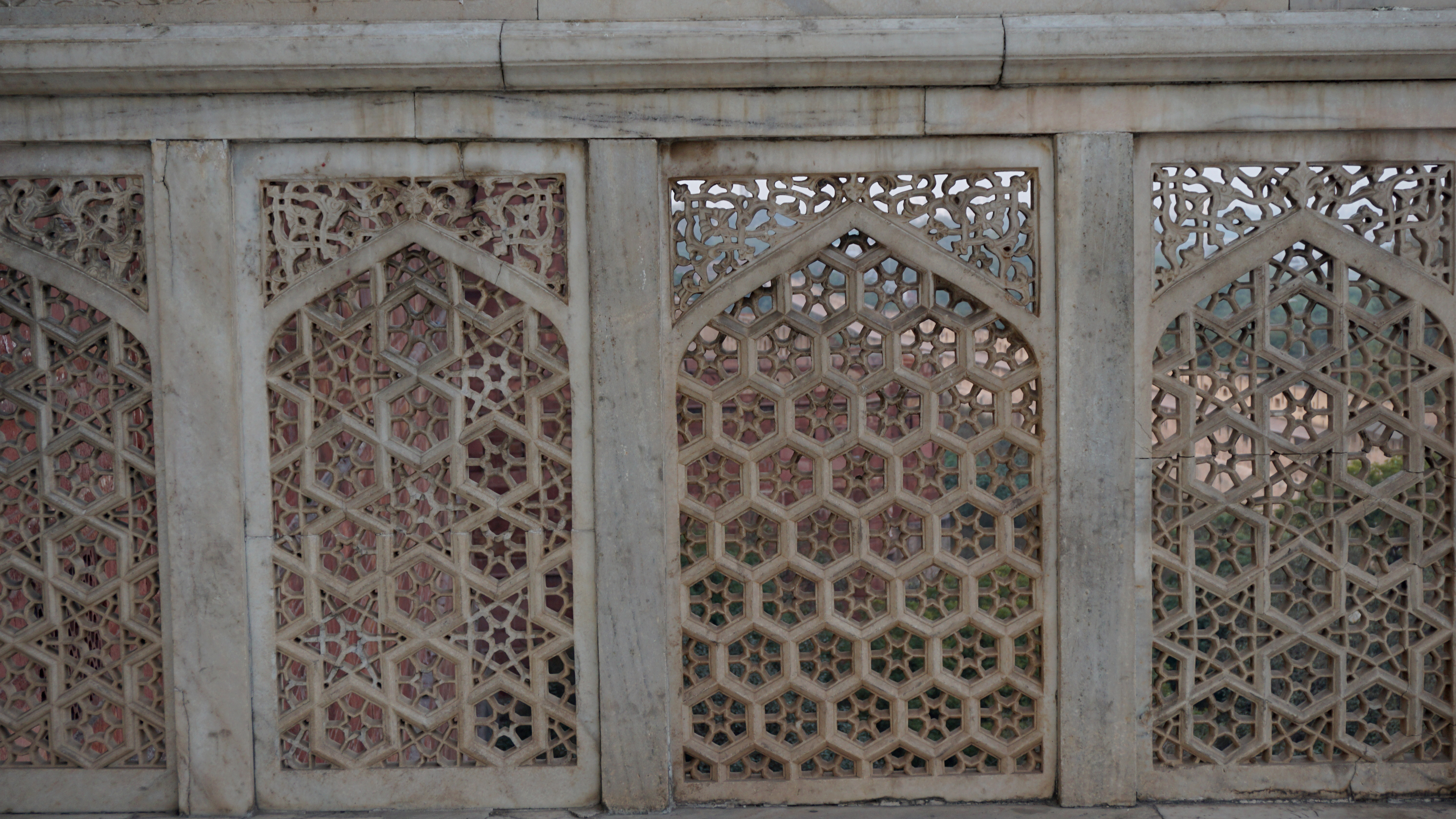 I love that the Agra Fort was/is a military fortification with exquisite beauty in the details that were just as thought out as its defense. The details in the carved stone as well as the stone inlay speak to the finest palaces, not forts, found around the world. My favorite details though are the stone lattice windows. Taking marble and carving into something so light and airy with such intricate geometric patterns is a true art. I never tired of looking at the various patterns in all of the forts across India we visited.