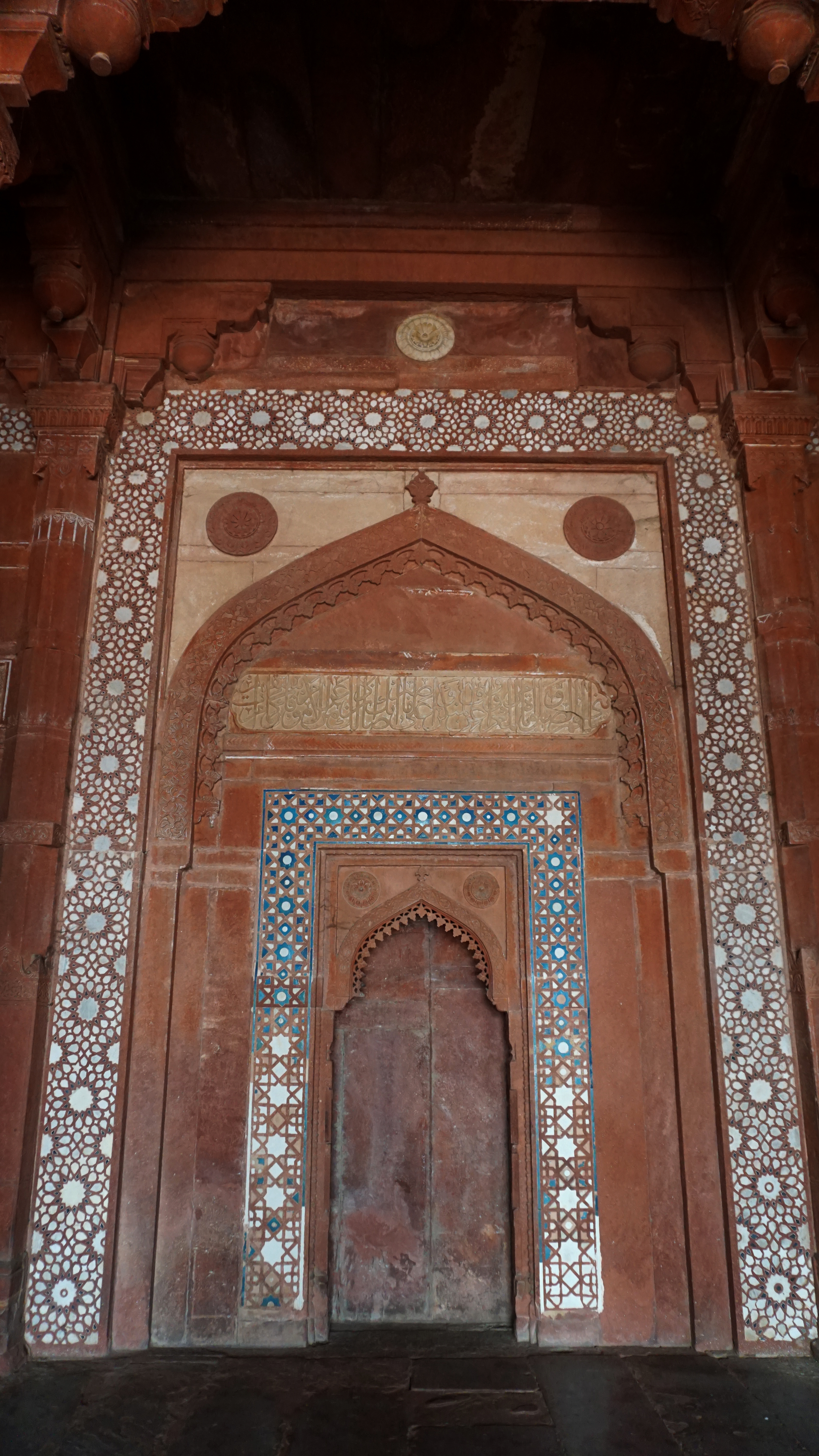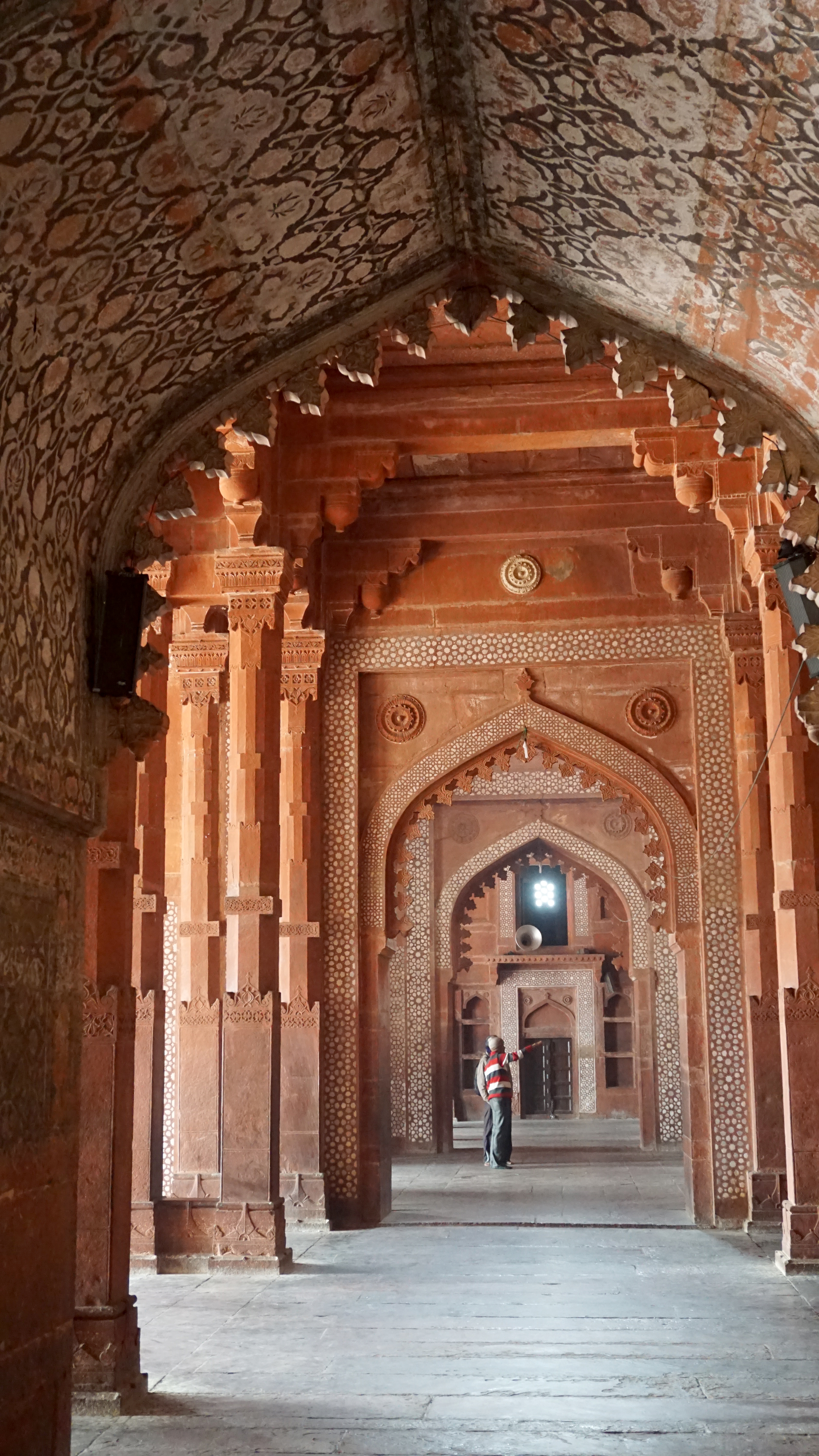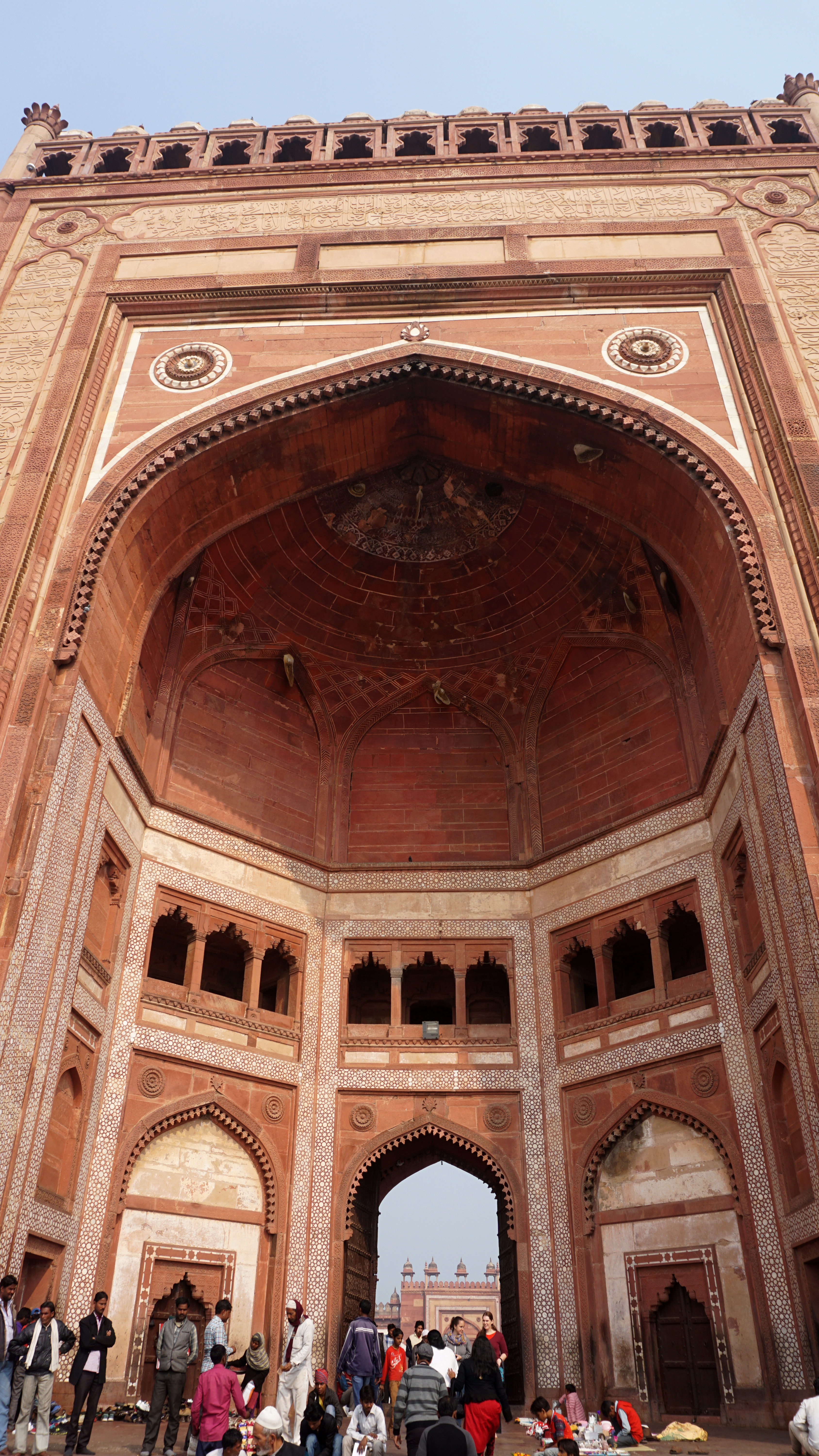 Just around the corner from the palace at the top of the hill stands the mighty mosque Akbar built. It is still an active pilgrimage site with people coming to pray including many Hindus because of a shrine to the holy man who blessed his favorite wife.