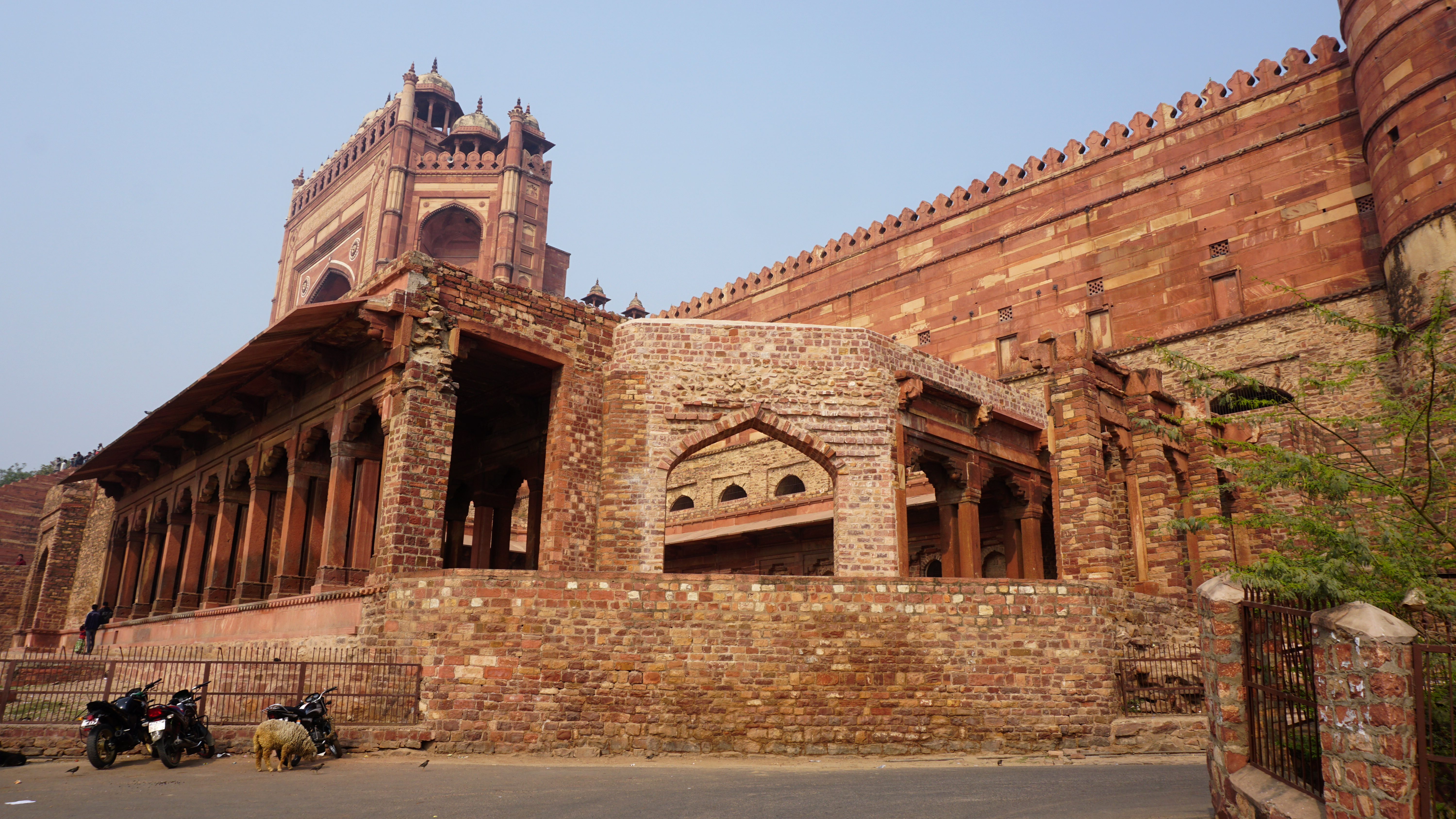 In front of the mosque is an ancient bath house where people would wash before entering. There is also an alms court where Akbar would go and give alms to the poor.